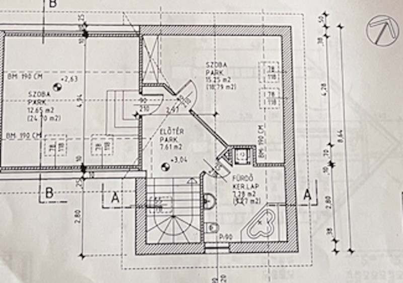 A bruttó 110 m²-es épületrész hasznos alapterülete 85,84 m²