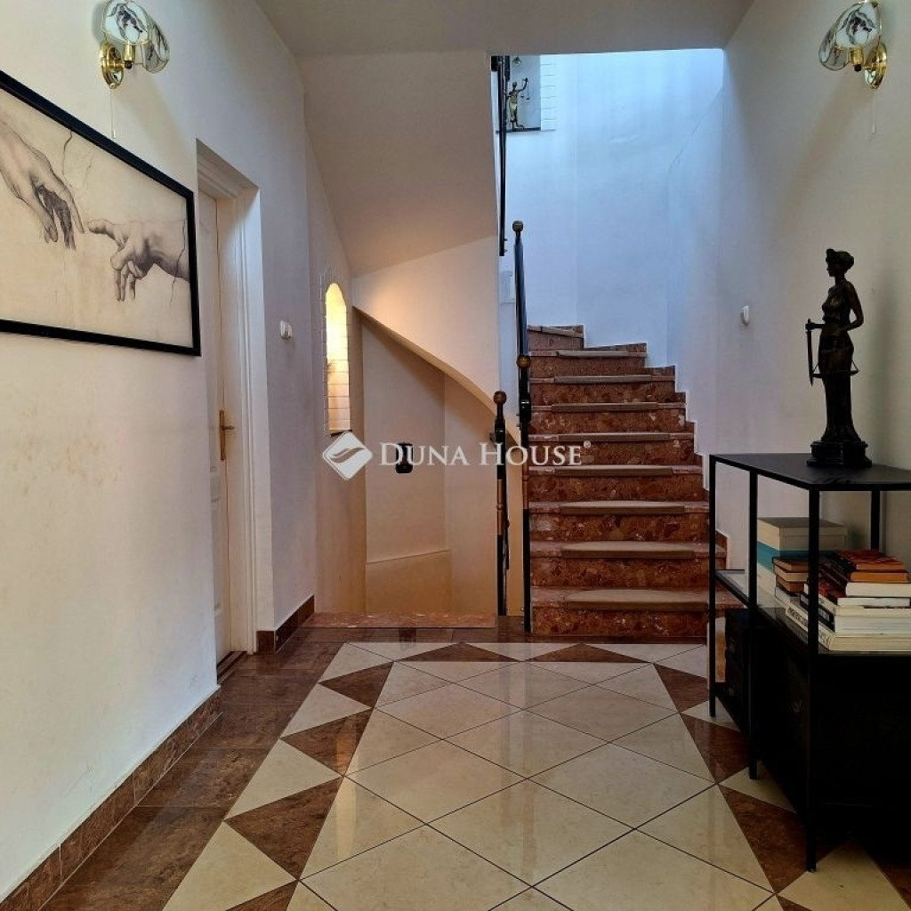 BUDAKESZI- MAKKOSMÁRIA - ELADÓ HÁROMSZINTES PANORÁMÁS CSALÁDI HÁZBudakeszi legkeresettebb részén, Makkosmária frekventált, mégis csendes környezetében kínálunk eladásra egy kiváló adottságokkal rendelkező, háromszintes családi házat. Az ingatlan elhelyezkedése optimális egyensúlyt teremt a természetközeli nyugalom és a városi infrastruktúra elérhetősége között.Az ingatlan paraméterei és elrendezése:A ház bruttó 344 m² alapterületű, melyből a hasznos nettó lakótér 253 m².Az épület belső kialakítását a tágas, jól benapozott terek és a funkcionális térelosztás jellemzi.Pince és kiszolgáló szint: Itt kapott helyet a tágas, KÉTÁLLÁSOS GARÁZS, valamint egy SZAUNAA szinten található továbbá egy nagyméretű, rugalmasan hasznosítható helyiség, amely alkalmas fitneszszoba, hobbihelyiség vagy tároló kialakítására.Földszint: A közösségi élet központja a nagyméretű nappali, amely közvetlen kapcsolatban áll az amerikai konyhás étkezővel. Ezen a szinten található egy napfényes dolgozószoba, fürdőszoba, külön mellékhelyiség és egy háztartási helyiség is. A nappaliból egy nagyméretű teraszra jutunk ki.Tetőtér: A privát szférát két nagyméretű hálószoba, gardrób, valamint fürdő és mellékhelyiség biztosítja. A felső szintről nyíló erkély, a teraszhoz hasonlóan, zavartalan panorámát nyújt a környező tájra.Kert és extrákAz ingatlan egy gondozott, parkosított kerten keresztül közelíthető meg, amelynek fenntartását automata öntözőrendszer segíti. Az épület szerkezeti állapota és a belső terek méretei ideális alapot nyújtanak nagyobb családok számára, vagy azoknak, akik reprezentatív otthont keresnek a budai agglomerációban.Főbb jellemzők összefoglalva:Helyszín: Budakeszi-Makkosmária (kiemelt övezet)Alapterület: 253 m² nettó / 344 m² bruttóSzobaszám: Nappali + 3 szoba (bővíthető)Kényelmi funkciók: Szauna, fitnesz helyiség, kétállásos garázs, panorámás teraszok.További információkért és a megtekintéssel kapcsolatban keressen bizalommal!