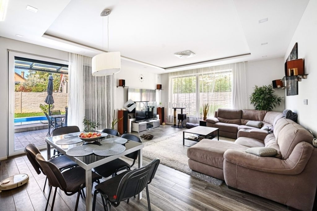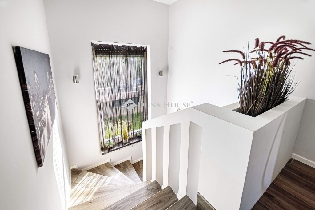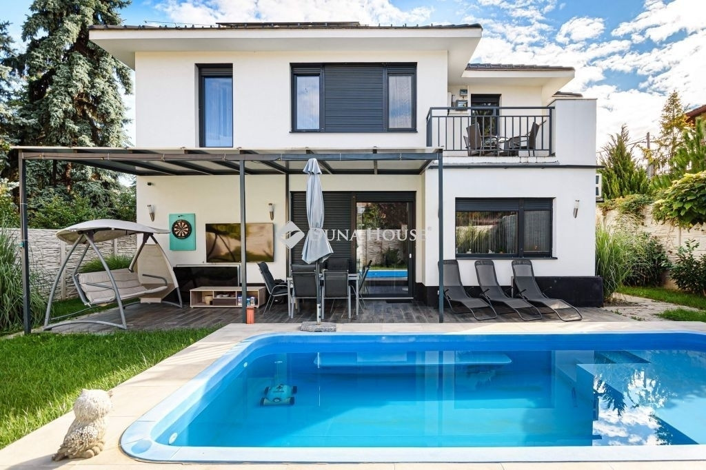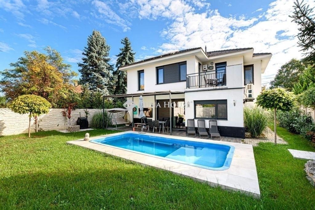 Az ingatlan a modern építészet és a természet közelségének harmóniáját kínálja azok számára, akik nem csak egy házat, hanem egy valódi otthont keresnek. Az épületben megtalálhatóak a legmagasabb minőségű anyagok és a legújabb technológiai megoldások, amelyek biztosítják a kényelmet és a biztonságot. Az otthon melegét és egyediségét a természetes fény játéka, az elegáns terek és a kivételes dizájn elemek adják.Az ingatlan bruttó 245 nm alapterületű amely 160 nm lakótérből és kiszolgáló helységekből áll, nappali+4 háló, 70nm garázs amelynek a megközelítése fütött rámpán történik.Kikapcsolódást pedig a napozóterasz és egy 6x3 méteres, fűthető medence teremti meg, mely zuhanyzóval van kiegészítve.Nappaliból nyíló teraszon túl az emeleten lévő valamennyi hálószoba rendelkezik terasszal/erkéllyel.Közlekedés szempontjából rendkívül előnyös, közelben iskola, óvoda, kerékpár út található.Kiváló lehetőség családok vagy akár befektetés céljára!Amennyiben felkeltettem érdeklődését, kérem keressen!