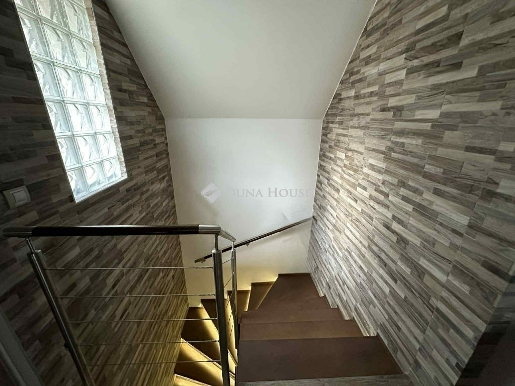 Eladó családi ház Budaörsön, a Kőhegy lábánál csend, természet közeliség és modern kényelem egyben!Budaörs egyik legkedveltebb, nyugodt, forgalomtól mentes részén, a Kőhegy közvetlen közelében kínálunk megvételre egy kétszintes, tágas családi házat, amely igazi otthona lehet mindazoknak, akik szeretnék élvezni a természet közelségét, de fontos számukra a modern komfort és a kiváló megközelíthetőség is.Az ingatlan főbb jellemzői: Földszint: amerikai konyhás nappali, három külön nyíló szoba, fürdőszoba, előszoba beépített szekrénnyel, valamint közvetlen kijárat a teraszra és a szépen parkosított előkertbe. Innen érhető el az autóbeálló és az elektromos kapuval ellátott utcafront. Tetőtér: eredetileg három hálószobásnak tervezett szint, jelenleg két hálószoba, egy nagy közösségi tér, kádas fürdőszoba és egy napfényes tetőterasz alkotja. A teraszról kis lépcső vezet a hátsó kertbe, ahol egy külön bejáratú kiskapu is található. Pince: boltíves, fél téglával kirakott, igazi karakteres tér, amely számos funkcióra (borospince, hobbyhelyiség, tároló) alkalmas.Az ingatlan kétgenerációssá is átalakítható!Műszaki megoldások: Korszerű hőszigetelés, műanyag nyílászárók redőnnyel és szúnyoghálóval. 3,4 kW teljesítményű napelem rendszer, amely csökkenti a rezsiköltségeket. Ariston kombi cirkó fűtés: a földszinten padlófűtés, az emeleten radiátorok biztosítják a meleget. Három darab légkondicionáló berendezés az emeleti helyiségekben. Elektromos kapu, külön gyalogos bejáró, autóbeálló.Környék:A ház elhelyezkedése páratlan: közvetlenül a Kőhegy lábánál található, így a túrázás és a természetjárás mindennapi lehetőség. A környék rendkívül csendes és nyugodt, ugyanakkor pár perc alatt elérhetők Budaörs bevásárlási lehetőségei, iskolái, óvodái és a gyors autópálya-kapcsolat is.Ez az ingatlan ideális választás lehet családok számára, akik egy nyugodt, természetközeli környezetben keresnek modern, jól felszerelt otthont.Ha felkeltettem érdeklődését, hívjon bizalommal a hét bármely napján!
