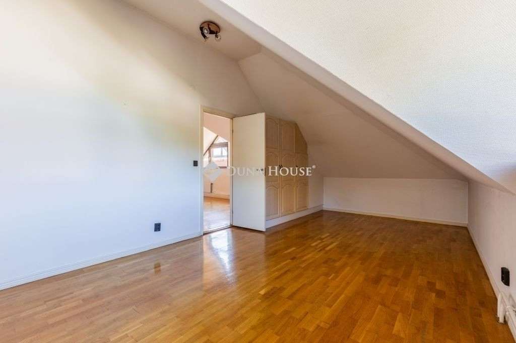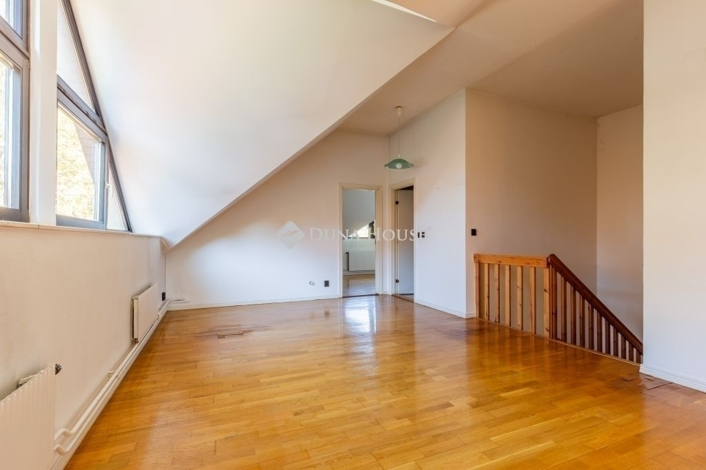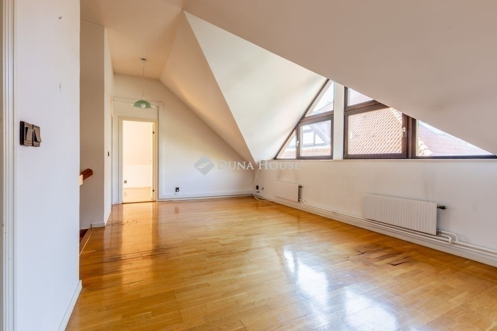 A ház egy olyan utcában helyezkedik el, ahol ritkán kerül eladósorba ingatlan, így ha Ön egy olyan helyet keres, ami nem csak lakhatásra, de befektetésre is remekül alkalmas, akkor megtalálta azt. Az épület mérete és elhelyezkedése számos lehetőséget rejt magában, legyen szó akár átalakításról, bővítésről vagy egyéni stílusának megfelelő felújításról. Az 1992-ben, magas minőségben épült 3 szintes, jelenleg 2 nappalis+3 hálószobás (de könnyedén kialakítható további két hálószoba is) ház egy lakóparkban található, melynek hatalmas, közös használatú, fákkal körbeölelt zöld kertje van, privát játszótérrel. Az alagsori részen található a tágas garázs, több tároló helyiség, egy hobby szoba és a mosókonyha. A földszinten a nagy méretű nappali és szintén tágas konyha, egy hálószoba és egy fürdőszoba kapott helyet, illetve a nappaliból kilépve itt található a hangulatos, fedett terasz, melyről közvetlen lejárat van a lakópark kertjébe. Az emeleten egy óriási gyerek nappali, két hálószoba, egy fürdőszoba és egy gardrobe található.Kiváló infrastruktúra jellemzi: iskolák, óvodák, bevásárlási lehetőség, tömegközlekedés pár percre találhatóak. Az ingatlan tehermentes, 1/1-es tulajdonban van, azonnal költözhető.