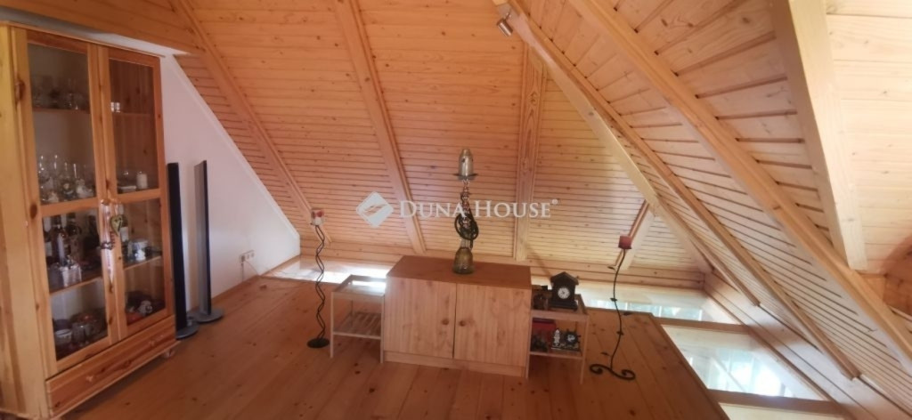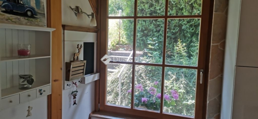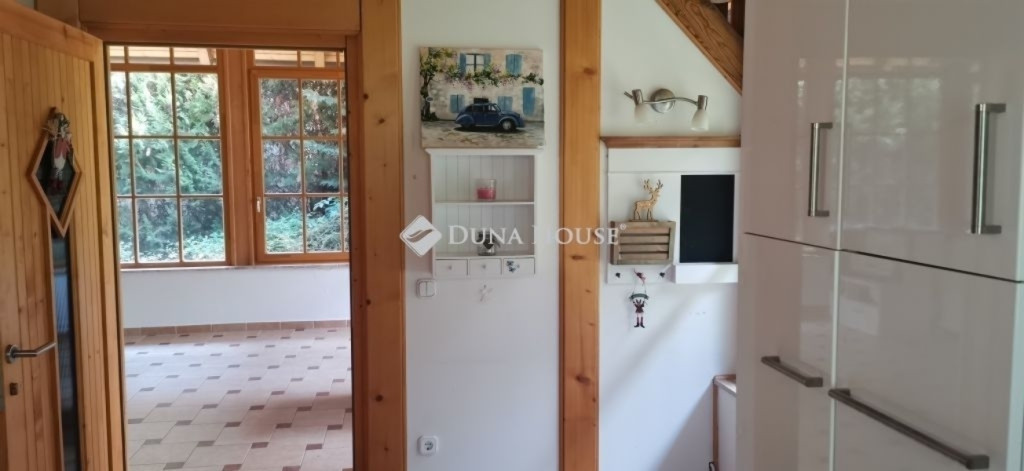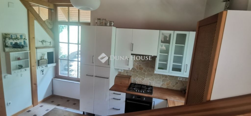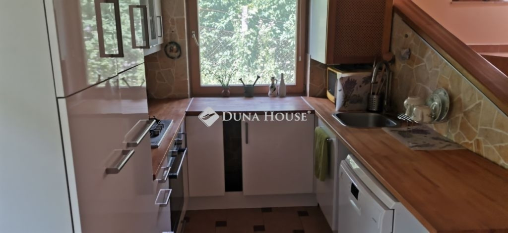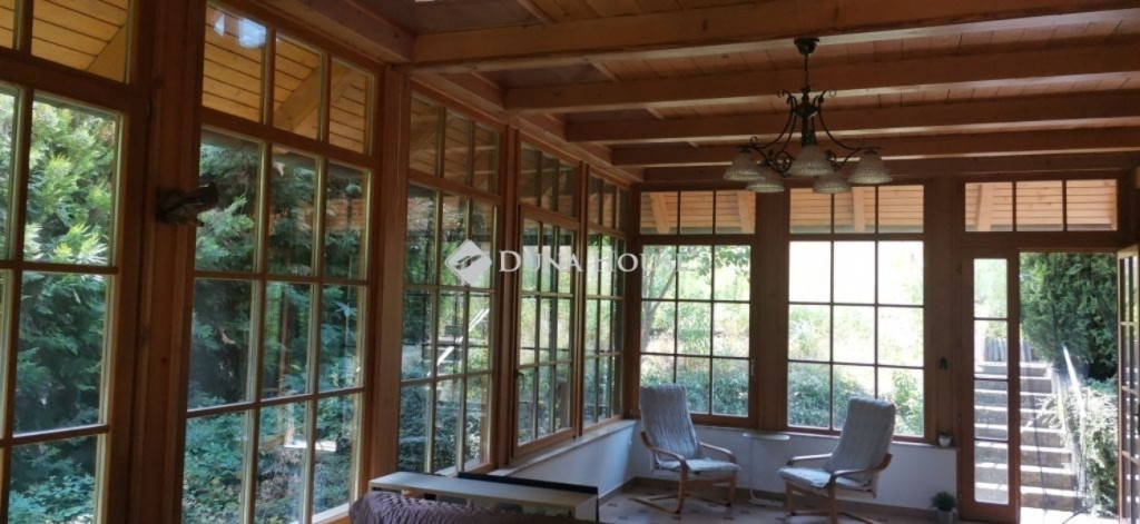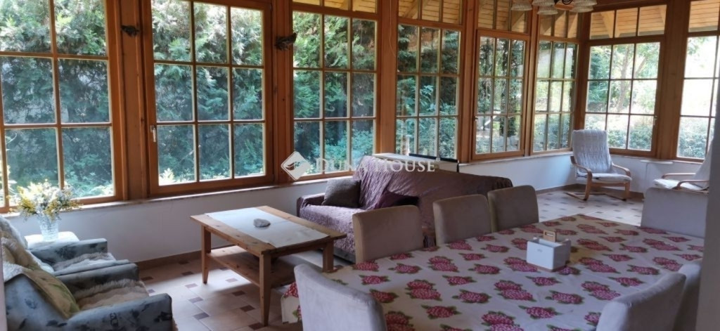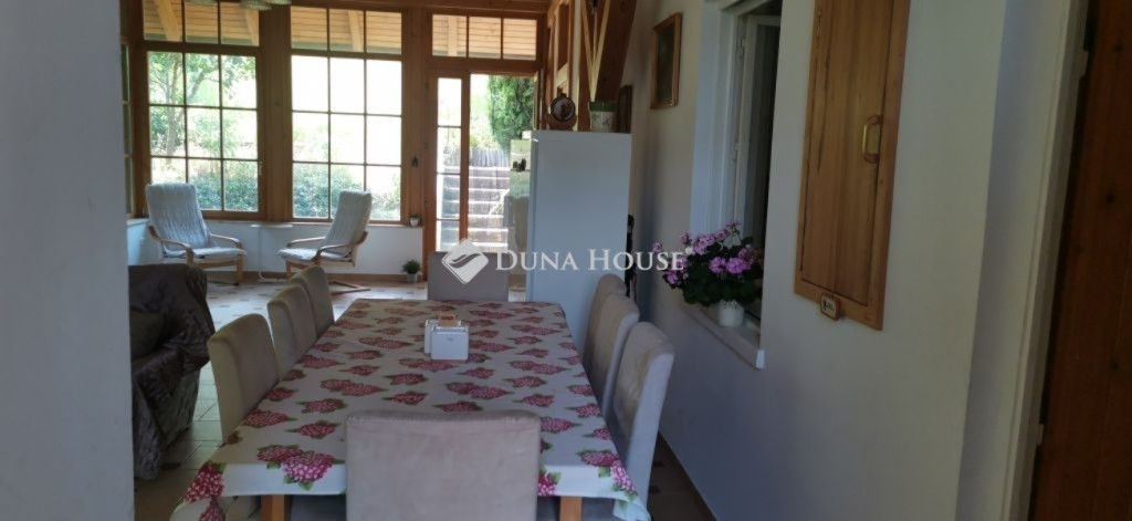 A ház 2005-ben épült, egyedi kialakítású, tetőtér beépítéses, kétszintes tégla családi ház. Az ingatlan egyik nagy előnye, hogy akár két generáció együttélésére is alkalmas. Együtt de mégis külön! A házat egy hatalmas kert, borospince, nagyméretű garázs, valamint további autóbeállási lehetőség teszi még kényelmesebbé a nagycsaládosok számára.Fűtése, meleg víz ellátása gáz cirkóval megoldott, a földszinten padlófűtéssel kiegészítve.A két generációs házban az egyik lakrész 35 m2 nagyságú, a földszinten a bejárattól jobbra található, amely áll egy előtérből nyiló szobából, konyhából és fürdőszobából, wc-vel. A konyhából egy átadó ablak nyílik a nappaliban lévő étkezőasztal felé, amely a családi összejöveteken praktikus megoldás a vendégek kiszolgálására. A nappali különös hangulatát a három oldalán elhelyezkedő kazettás fa ablakok adják, melyek révén mintha közvetlenül a fák tövében ülnénk, miközben szemlélhetjük a természet zöldjét az énekesmadarak, a mókusok játékát. Igazán különleges érzés, bent vagyunk, de mégis kint érezzük magunkat!A másik lakrészhez tartozó konyha a tágas nappali túloldaláról nyílik, amely a hátsó kertre nyílik és az oldalkertre néz, modern és kényelmes U-alakú elrendezésével. Itt található még egy háztartási helység és egy wc mosdóval. Innen jutunk fel a kétkarú lépcsőn az emeletre, amely egy egy légterű, fenyőfával burkolt tetőtéri nappali dolgozósarokkal. Ez egy légkondcionálóval ellátott, napfényes, hatalmas belső tér, amely sok lehetőséget rejt magában, plusz érdekes megoldás, hogy körben üvegpadló van, amely a fölszinti nappalit is plusz természetes fénnyel látja el. Nagyon hangulatos, a fényképek nem adják vissza, hogy mennyivel növeli a térérzetet ez a különleges padló kialakítás.A felső szinten ezen kívül egy kisebb szoba, gyerekszoba található, melllette zuhanyzós fürdőszoba wc-vel és a hálószoba a teljes faltól-falig tartó diófa terasszal! Erről a fedett teraszról is lenyűgöző, örökpanorámás kilátás nyílik a budai hegyekre, amelyet a teljes szélességében eltolható nyílászárókkal élvezhetünk maximálisan. A kert hatalmas, kissé emelkedik felfelé a kert vége felé, felúton a domboldali borospince, amely egy földdel borított boltíves hobbit pince.A ház szigetelt, szépen bevakolt, nagyon jó állapotban van, a tulajdonosok építették a család részére, kezdetnek nyaralóként, aztán állandó lakhelyként szolgált. Jelenleg nem lakják az ingatlant, gyorsan birtokba vehető. A környék csendes, pár utcával odébb található buszjárat 10 perc alatt Hűvösvölgyben van, onnan a város fél óra alatt elérhető. A közelben óvoda, iskolák, kisebb boltok, éttermek, szolgáltatók megtalálhatóak és persze rengeteg kirándulási lehetőség.Nézzük meg együtt, ne maradjon le erről a hangulatos, egyedülálló ingatlanról! Töltse már itt a nyarat!