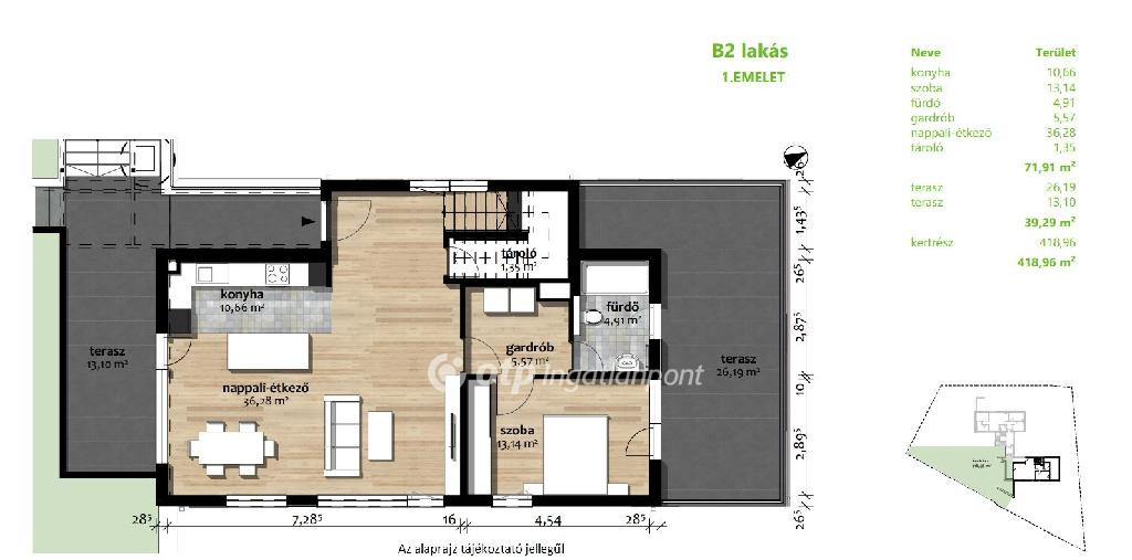 A megvételre kínált ingatlan szinte önálló CSALÁDI HÁZKÉNT került kialakításra. Ugyan az első emelettől indul az ingatlan alsó része, de kétszintes kialakításának + a padlásnak köszönhetően, továbbá, hogy csak egy alsó, szeparált szomszédja van így az önálló családi ház érzést nyújtja. 210 nm-es lakóterületen összesen 5 szobát alakítottak ki, a kedvező térszerkezetnek köszönhetően mindegyik külön nyílik és jól elválasztott egymástól. A tervezők arra is figyeltek, hogy két master bedroom (privát gardróbbal és fürdővel) is kialakításra került, egy a földszinten, egy pedig az emeleten. A padlástér további 63,5 nm, melynek hasznosítása az új tulajdonos fantáziájára van bízva. A nappali és az alsó szinten lévő háló közvetlen, összesen 40 nm-es terasz és 384 nm-es privát kert kapcsolattal rendelkezik. Elosztását tekintve nappali + 4 hálószobával rendelkezik, jól elkülönülten, hogy a család minden tagjának meglegyen az intim szférája. Két fürdőszoba került kialakításra, így dupla komfortosnak tekinthetjük, a privát kertkapcsolat a teraszról érhető el. Hatalmas és egyben jól tájolt nyílászáróinak köszönhetően a nap minden szakaszában világos, tájolása Dél-nyugati. A lakáshoz tartozik egy autóbeálló a garázsszinten. Igény szerint az épületben további garázs és tároló is vásárolható a lakáshoz, melynek vételárát a meghirdetett ár nem tartalmazza.