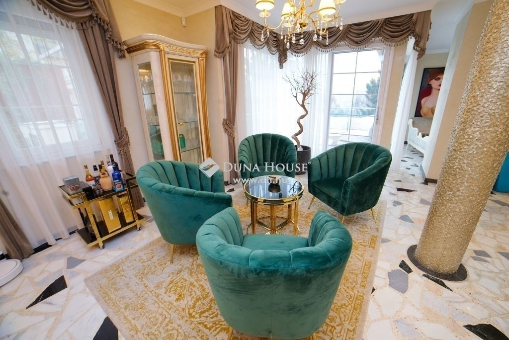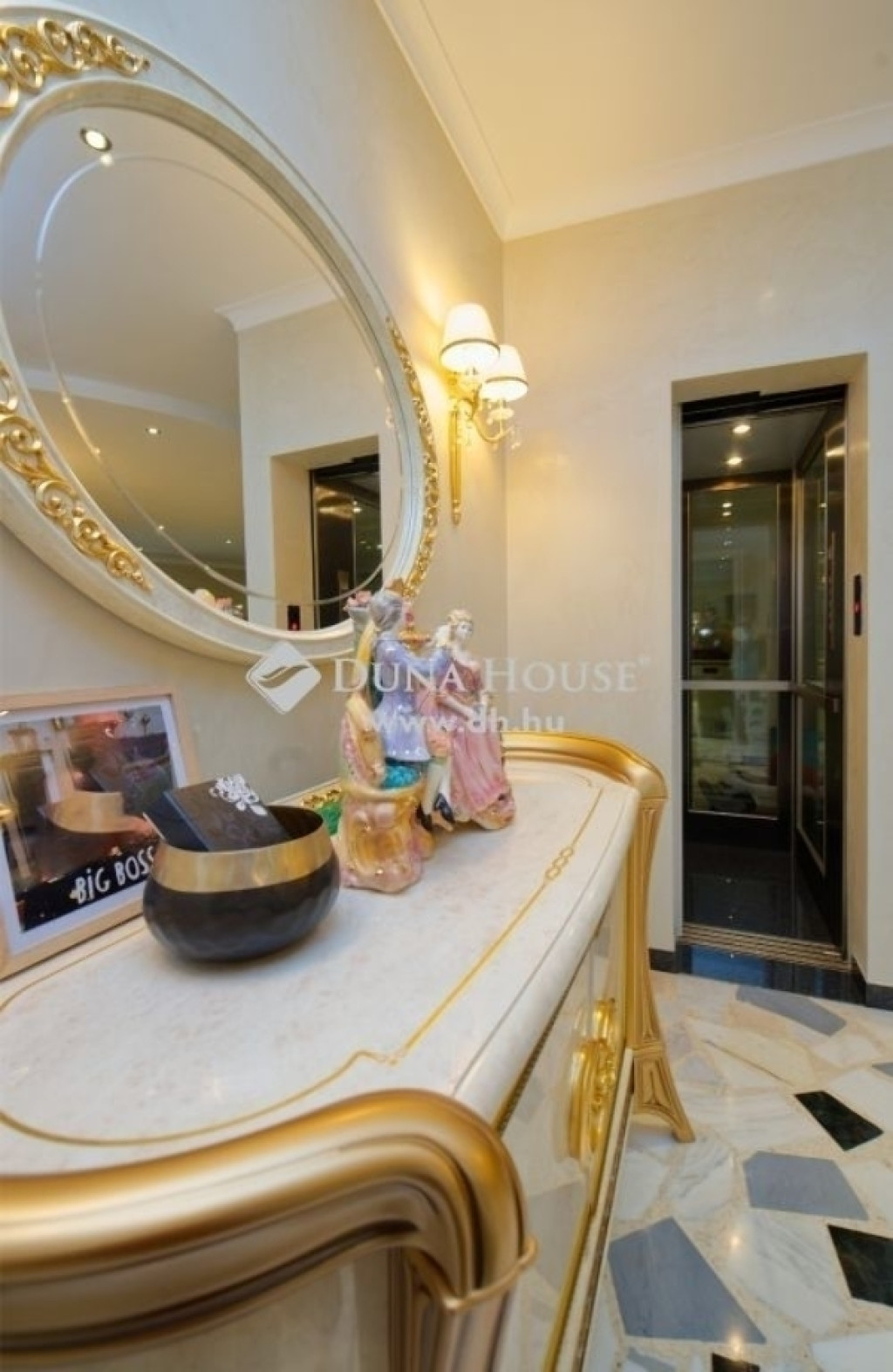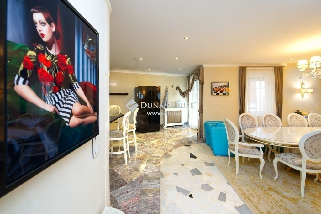 Kivételes lehetőégként eladó ez a prémium anyagok felhasználásával épült, belső kétszintes, napfényes, 398 m2-es lakóterületű, [benne a városra PANORÁMÁS 101 m2-es amerikai konyhás nappalival, előtte 71 m2-es terasszal, az emeleten 4 hálószobával, tágas erkéllyel, gardróbszobával], tripla komfortos, belső (saját) liftes, egyedi közüzemekkel rendelkező, padlófűtéses, kitűnő állapotú lakás a hozzátartozó két állásos garázzsal, teljes bútorzattal!