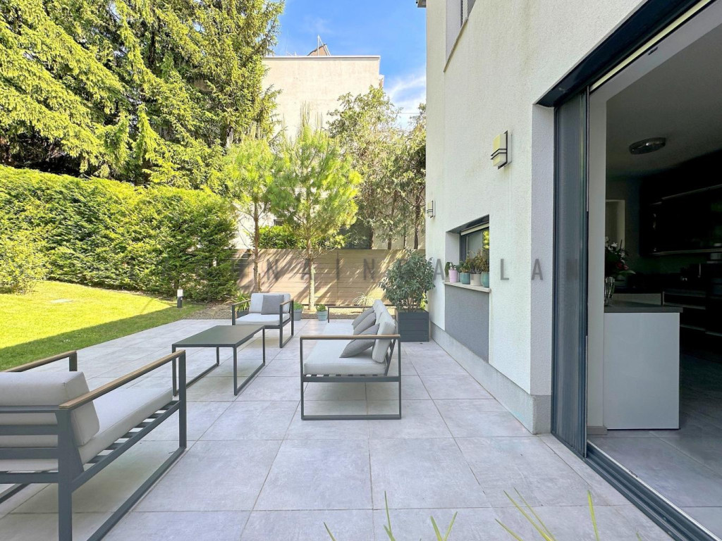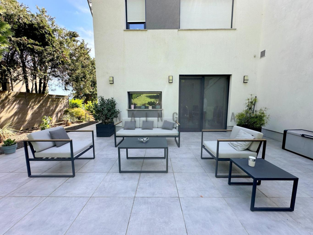 Különleges adottsága a kertépítésszel kialakított városi panorámás tetőkert. 619 m2 privát kert grillezőterasszal, előre városi panoráma hátulra zöld hegyoldal látszik.