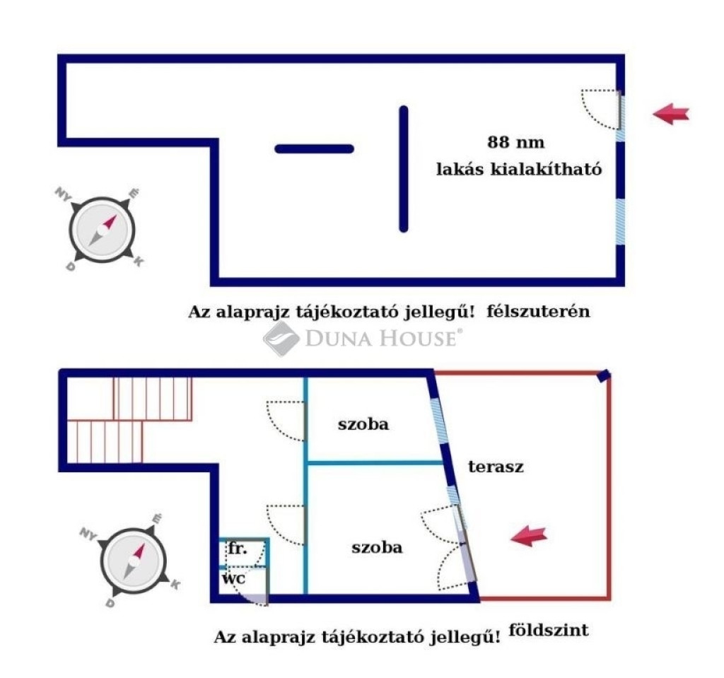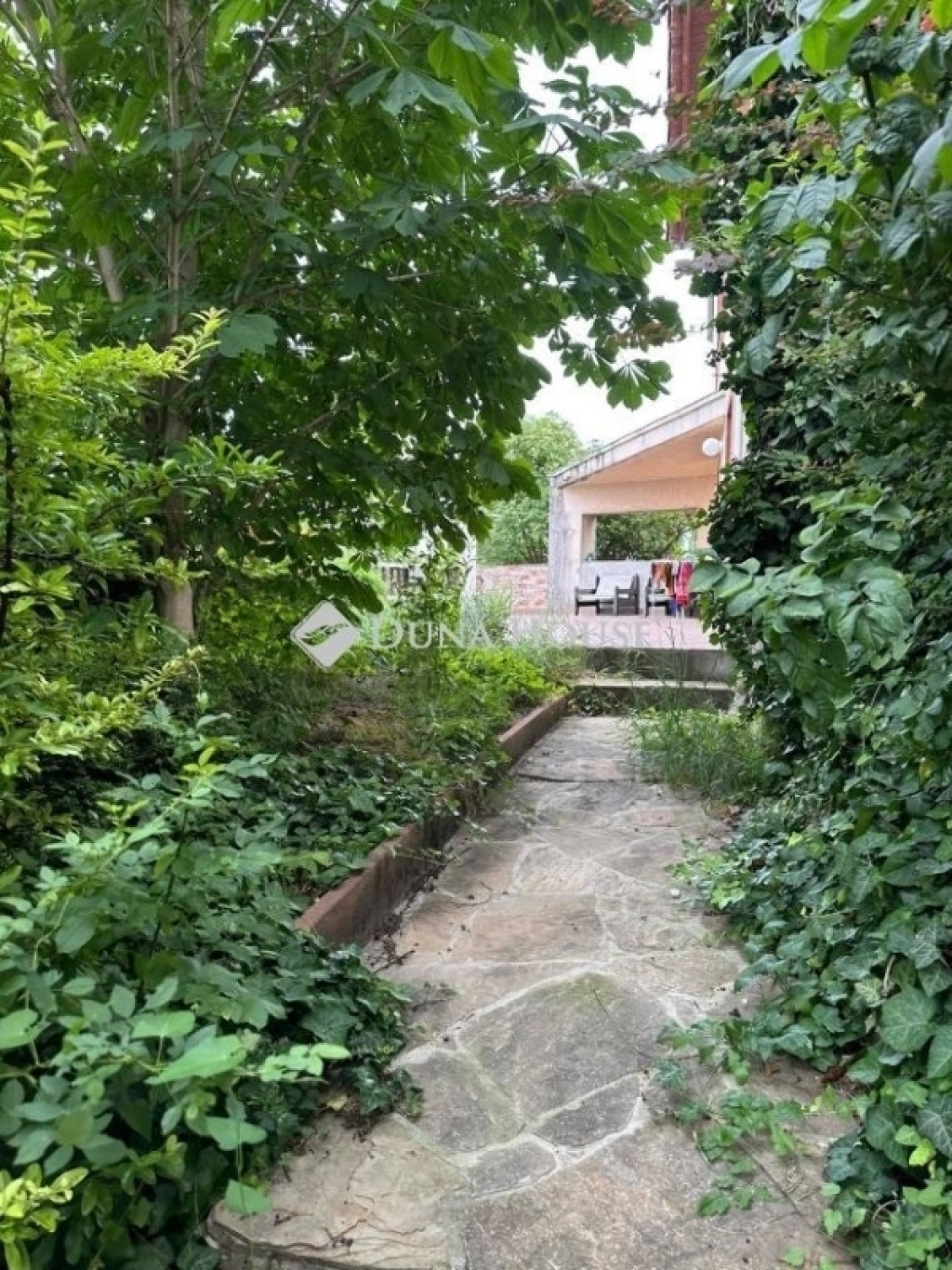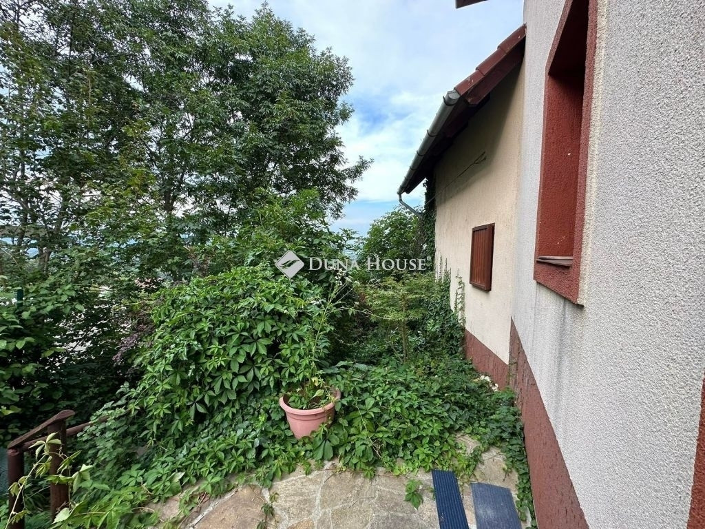 A ház leírása: A garázs melletti kapun belépve lépcsőn mehetünk fel a kertbe, ahonnan a 88 m²-es pince/szuterén nyílik (félig a talajszint fölött, félig a föld alatt, ahogyan a hegy emelkedik). Itt egy különbejáratú lakás is kialakítható! A következő szinten 2 vendégszobát találunk, előttük a 46 m²-es terasz. Ezen a szinten van még egy fürdőszoba, külön WC és egy gardrób/raktár. A következő szint az 1. lakás: nagy nappali, két dolgozószoba (az egyik a Remete-szurdokra néző terasszal, a másik a Pilisre néző erkéllyel), panorámás hálószoba, tágas kamra, panorámás konyha terasszal, fürdőszoba WC-vel, + egy külön WC.