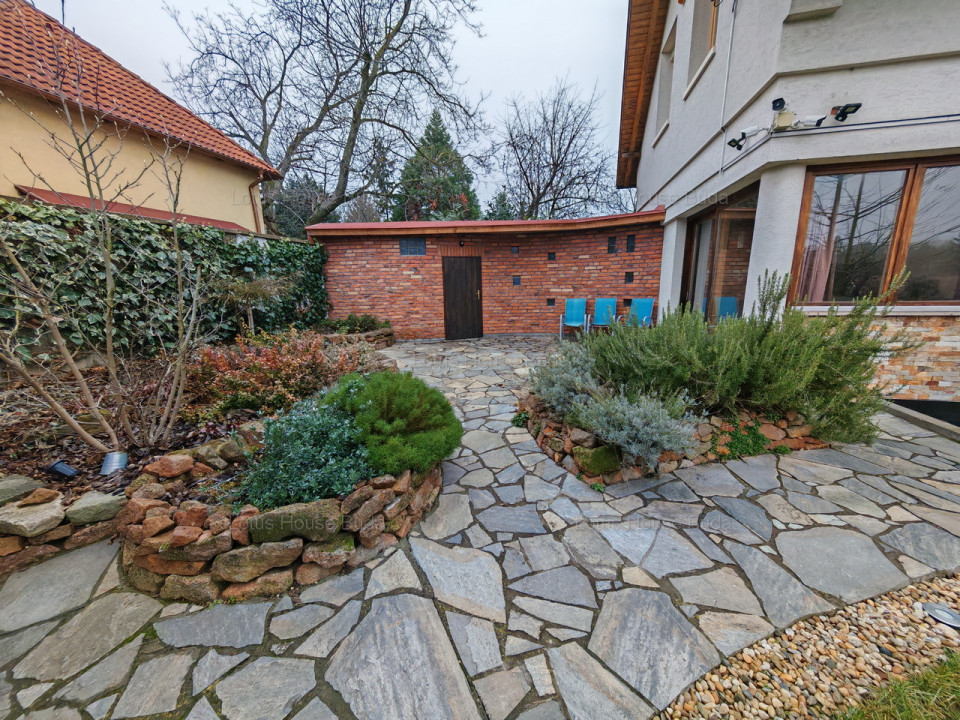 A ház egy teljesen intim, panorámás telken áll egy zsákutca végén, így abszolút mentes a forgalomtól. A telek lejtős, mindössze 343nm nagyságú, így kiváló adottságai azoknak kedveznek, akik gyönyörű és nyugodt helyen, családi házban szeretnének élni, de nem szeretik a nagy kert adta feladatokat. A ház földszinti lakószintje felett beépített a tetőtér és a ház egy része alatt pince is készült.