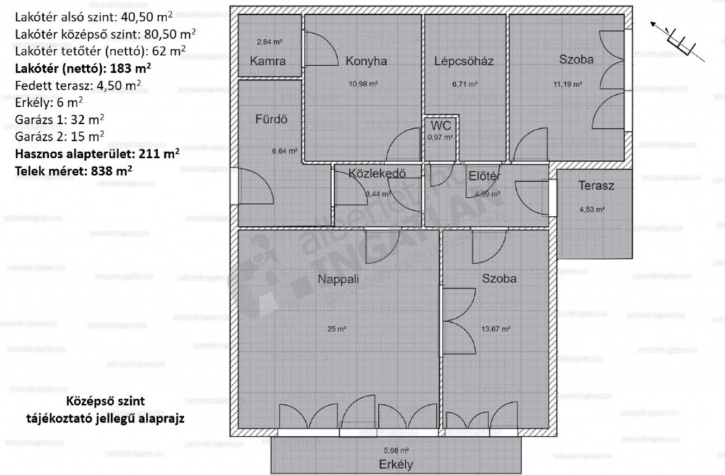 Hasznos alapterület: 211 m²