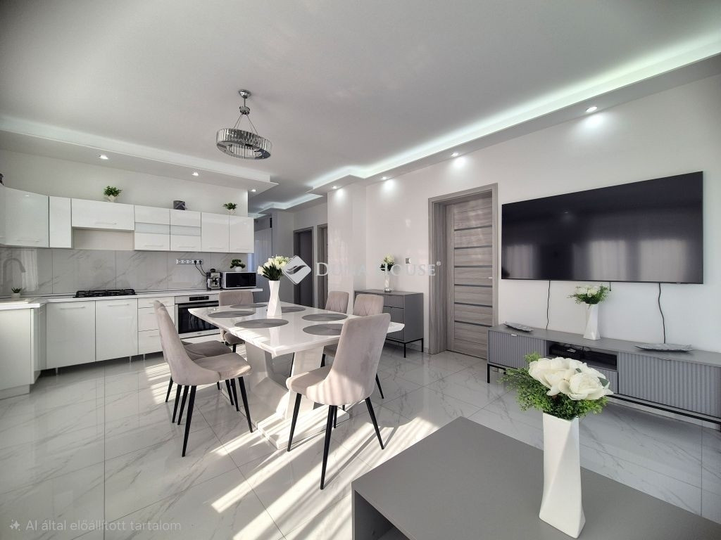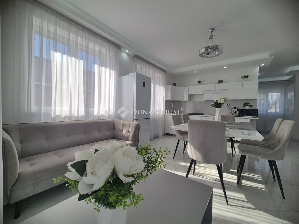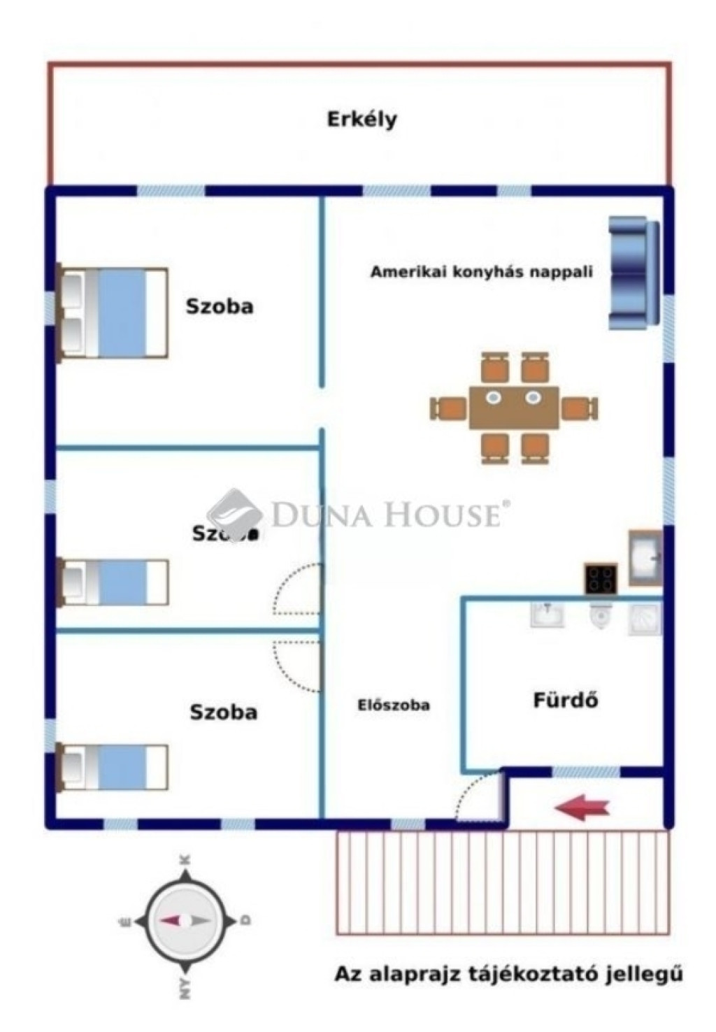 A 100 m2 lakótér a magas földszinten helyezkedik el, ahol egy erkélyapcsolatos amerikai konyhás nappali + 1 egész szoba + 2 félszoba, fürdőszoba, előszoba biztosít tágas, kényelmes életteret.