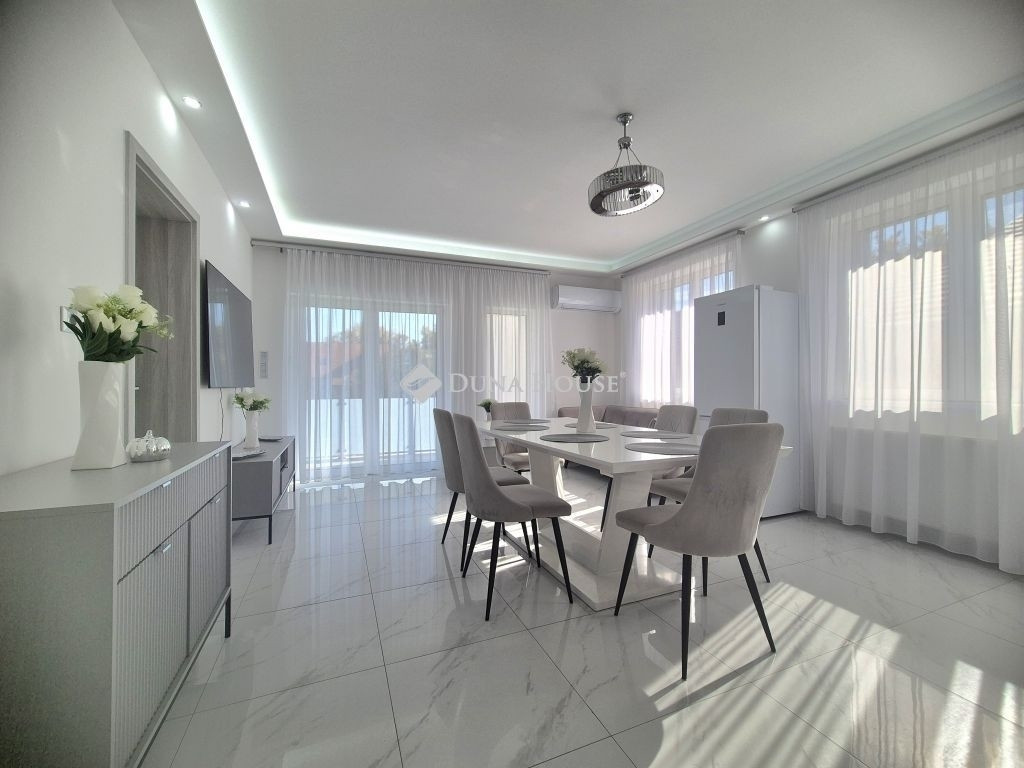 Az utdvarban térkövezett kocsibeálló van; NIVO kerítés és elektromos kapu garantálva az ingatlan biztonságát és privát jellegét.