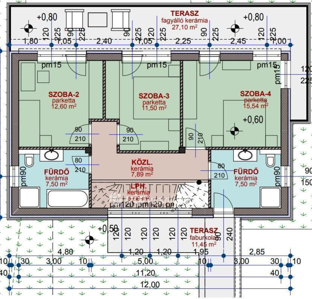 - Falazat 30cm vastag porotherm téglából készül, 15cm szigeteléssel.