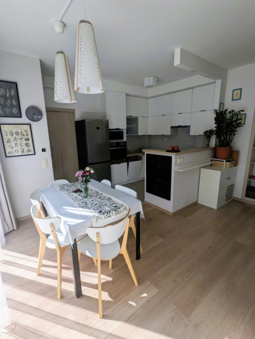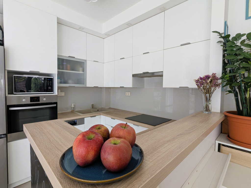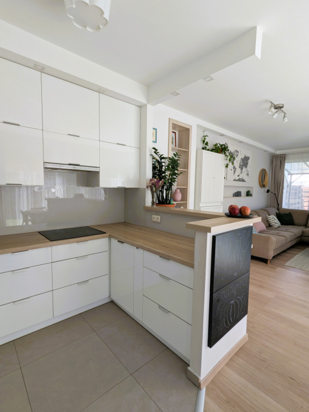 • napfényes, 34 m²-es amerikai konyhás nappali nagy üvegfelületekkel