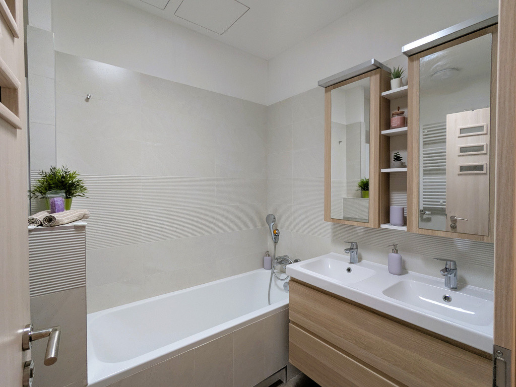 • nagy fürdő káddal, dupla mosdóval