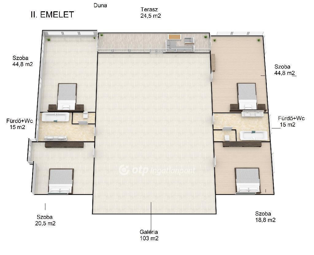VÍZPARTI INGATLAN SAJÁT KIKÖTŐVEL LUXUS KIVITELBEN !!! Budapest 3.kerület Duna parton eladó egy Villa, Luxus kivitelben. Az ingatlan 2000 nm-s telken helyezkedik el a 3 szintes épület 1000 nm, exkluzív belső terek. Alsó szinten 3 állásos garázs, csónakház közvetlen Duna kapcsolattal, úszómedence, wellness, fitness terem, boros pince, első szint 169 nm- es amerikai konyhás étkező nappali, háló, fürdőszoba. Felső szint 4 háló 2 fürdőszoba. A tetőtér további lehetőségeket nyújt különböző funkciók kialakítására. Kamerás riasztórendszer, központi klímarendszer, központi porszívó, és további extrák......