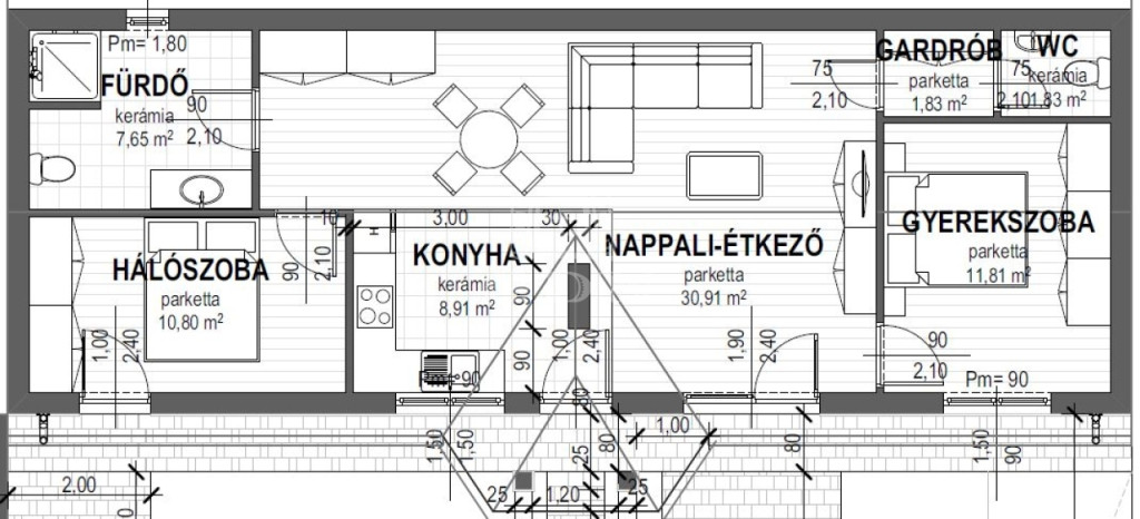 Az épület kiváló elosztású, napfényes, teraszkapcsolatos, amerikai konyhás, tágas nappali, 2 hálószoba, fürdő, 2 toalett kerül kialakításra.