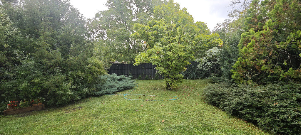 A kizárólagos használatú telek 883m 2 -es, kertje gondozott, parkos kialakítású.
