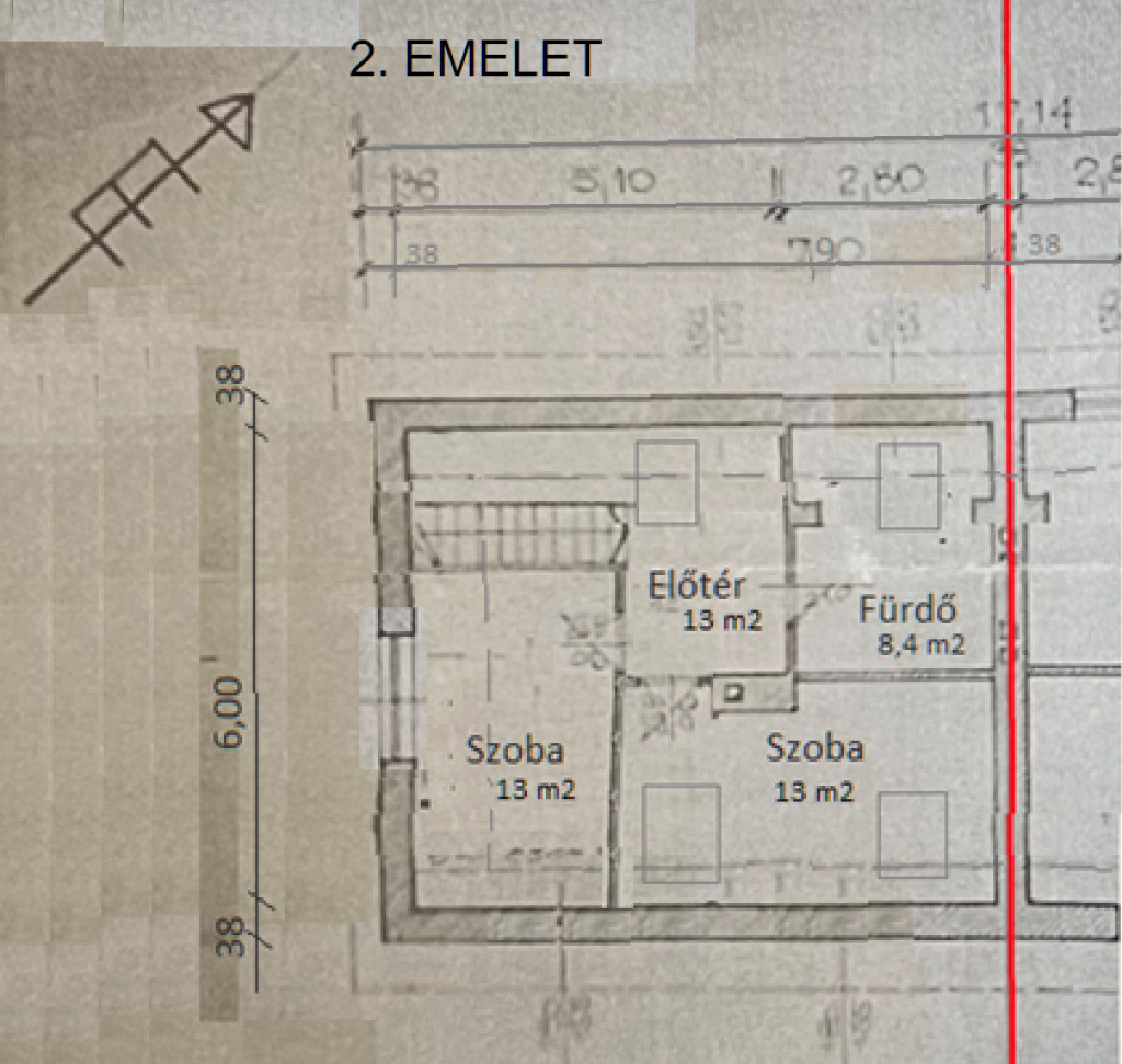 vendégszoba, kamra, WC és az előszoba. Az első emeleten három hálószoba, egy