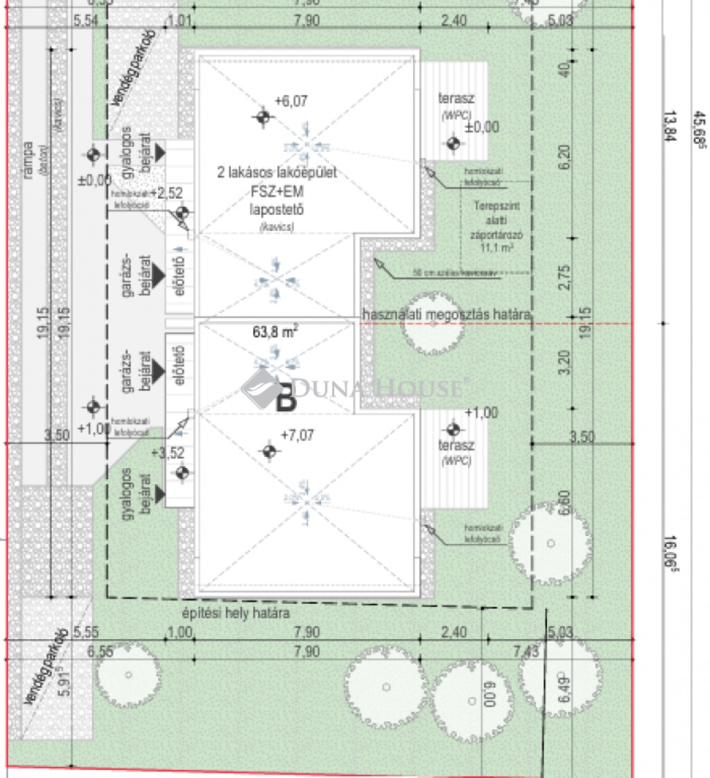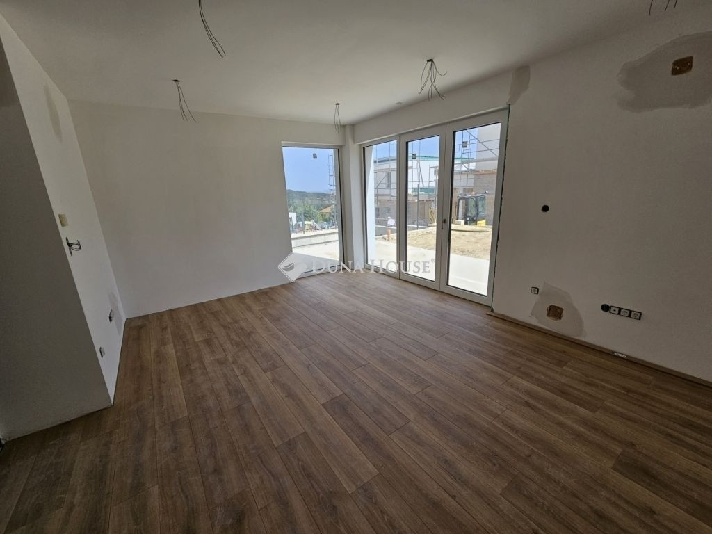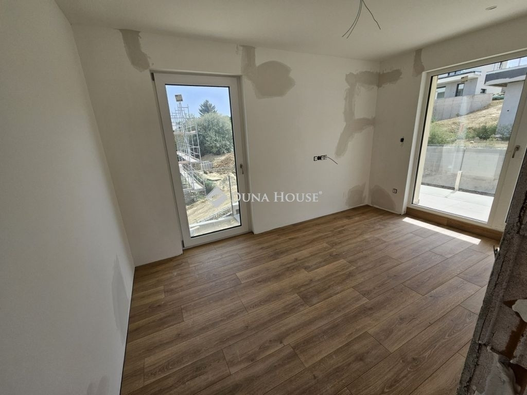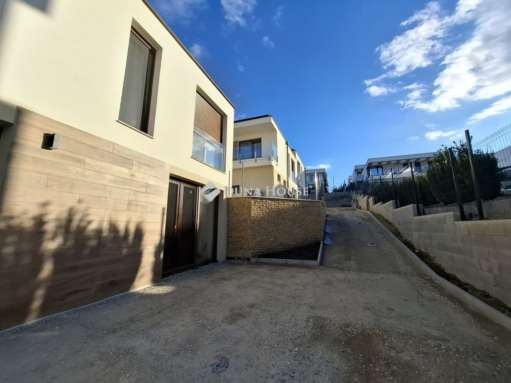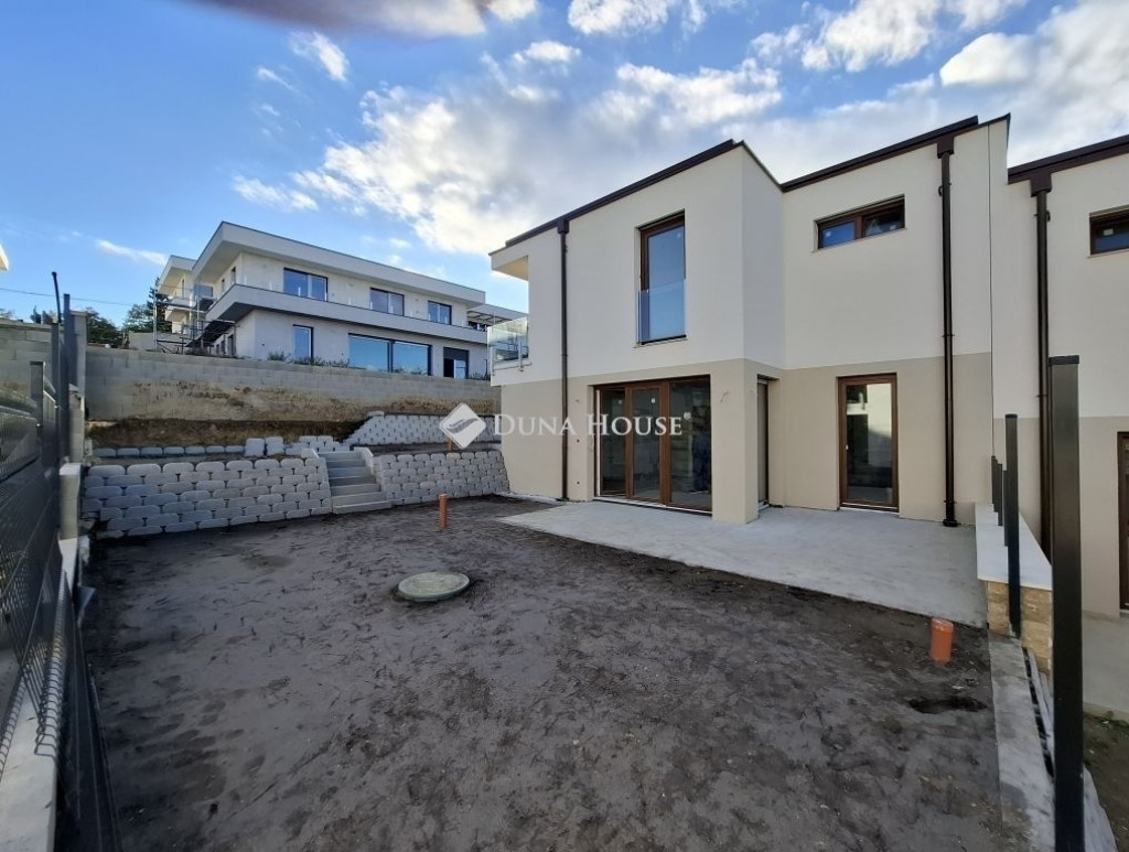Szintet léptünk! Használatbavételi engedéllyel rendelkező újépítésű, panorámás, energiatakarékos, 96 m2-es, nappali+ 3 szobás ikerházfél eladó Budapest, III. kerület Aranyhegyen, ahol a prémium minőség találkozik a városi idillel. Az ingatlan eladó praktikus, intim saját udvarral, árban és ingatlanban lévő garázzsal, 21 m2-es tágas terasszal, további külső kialakított autótárolóval. Itt már nem éri meglepetés, mindenről a saját szemével megbizonyosodhat. Ez már nem a képzelet, ez a valóság.Ajánlom ezt az ingatlant azok számára, akik értékelik a természet közelségét, de mégsem akarnak lemondani a városi élet nyújtotta kényelmekről. Aranyhegy bájos közösséget, csendes környéket kínál, tökéletes választás mindazoknak, akik a nyüzsgő városi életből egy nyugodtabb, zöldövezeti helyre vágynak (netán sosem laktak más közegben). A környék tökéletes egyensúlyt kínál a természet szeretőinek és azoknak, akik a városi élet pezsgését, a minden elérhető távolságban van érzését keresik. Ne hagyja ki ezt az egyedülálló lehetőséget, hogy az Ön új otthonává váljon ez a különleges ingatlan.Az ideális elhelyezkedés és a lélegzetelállító panoráma miatt nem csak egy házat vásárol, hanem egy életstílust is. A 2 szintes, lapostetős ház a modern kori igényeket kielégítő otthonban a luxus és kényelem egyensúlyát nyújtja.A hőszivattyús megoldás a mai elvárások szerint alapkövetelmény, természetesen a ház ezzel felszerelt. A környezetbarát fűtési megoldások, mint a klíma és a napelem, nemcsak a környezetre, de pénztárcájára is kímélő hatással lesznek. A mennyezeti hűtés- fűtés, valamint a padlófűtés pedig az otthon minden szegletében ideális hőmérsékletet garantál.Az 1000 m2-es - Aranyhegynek megfelelően - jelentős szintkülönbséggel megáldott, ezáltal örök panorámás telken az utcaszinttől indulva egy autóbehajtón 2 épülethez jutunk el. A magasabban fekvő, úgynevezett B épület 2 lakásból áll, melyeket a garázsok kapcsolnak össze. A legmagasabban található lakás nyújtja a legnagyobb intimitást a telek végében található nagyobb önálló kertrésszel. A ház belső terét a természetes fény árasztja el, az intelligens elrendezés pedig még tágasabbá teszi a helyiségeket. A családi otthon nem csak kifinomult eleganciát sugároz, de praktikus megoldásokat is kínál a mindennapokra. A ház nem túl nagy, nem túl kicsi. Pont jó.A földszinten található a nappali -étkező- konyha kombinációban a legnagyobb helyiség, melyből a teraszra és a földszinti kiszolgáló helyiségekbe is eljuthatunk. A földszinten kapott helyet egy gépészeti rendszert is rejtő helyiség, de az előtérből beléphetünk a garázsba is. A garázs magában rejti a választás lehetőségét, igény szerint megtartható garázsnak, leválasztható belőle egy különálló konyha vagy további egy szoba.Az emeletre feljutva a közlekedőről 3 külön nyíló, panorámás, teraszos szobát, illetve a tágas fürdőszobát közelíthetjük meg. A teraszok edzett üveg korlátja nem gátolja a panorámára vetett pillantást, de maximális biztonságot nyújt.Műszaki tartalom:A prémium minőség, energetikai hatékonyság, korszerű technológia alapértelmezett az épületben.Az épület váza: Az épület szilárdságát vasbeton sávalap, lemezalap és vasbeton födémek biztosítják, míg a 30 cm vastag Porotherm X klíma téglák optimális hőszigetelést nyújtanak.A koszorúk előregyártott hőhídmentes hőszigetelő zsaluelemekből készültek.Gépészet: Energiatakarékos hőszivattyús rendszer mennyezetfűtés és -hűtés, padlófűtés, szobatermosztátos vezérléssel.Hőleadók központi mennyezet fűtés-hűtés és padlófűtés;Fűtés-hűtés vezérlése helyiségszinten szobatermosztátokkal történik, távoli eléréssel online kapcsolat esetén;Fürdőkbe kiegészítő fűtésként törölközőszárítós radiátor került elhelyezésre;Használati melegvíz készítését hőszivattyú biztosítja, a melegvíz egyenletes elosztását cirkulációs vezetékhálózat biztosítja;Erős- és gyengeáramú hálózatLakás önálló napszakos és H tarifás mérővel rendelkezik;Teljesítmény 3 x 20A;Kaputelefon elkészült;Alapfokú riasztórendszer telepítése földszinten, mozgás- és nyitásérzékelőkkel elkészült;Kamerarendszer előkészítés;Kábeltévé és internet előkészítés kész, internet van az utcában;Villanysütő és főzőlap kiállás kész;Napelem előkészítése.Fűtött autófelhajtó előkészítése (a térkő alatti fűtőszál beépítése) elkészült, vezérlés külön megrendelés alapján kérhető.Nyílászárók: Prémium minőségű, 3 rétegű üvegezéssel, több légkamrás profilokkal rendelkező nyílászárók behelyezése és a motoros redőnyök előkészítése már megtörtént. A homlokzati nyílászárók rovarhálóval és motoros alumínium redőnnyel is felszerelhetők. A kiváló minőségű elektromos rendszer a legmodernebb biztonsági előírásoknak megfelelően, érintésvédelemmel került kiépítésre, és igény esetén napelemes rendszer és elektromos autó töltés előkészítése is rendelkezésre áll.Önálló mérőórák, modern elektromos hálózat.A konyhabútor és más beépített bútorok NEM képezik az alapár részét.A tereprendezés már megvalósult, a telek és az épület adottságait kihasználva 2 teljes értékű saját külső parkolóhely áll rendelkezésre az épület mellett. Alapáron felül rendelhető tételek igény esetén:Napelemes rendszer telepítése;Szellőztető rendszer kiépítése;Okosotthon telepítése;Biztonsági rendszerek telepítése (beléptető, riasztó és kamerarendszerek);Kertvilágítás kiépítéseKert burkolatok építése;Kertépítés kérhető; (termőföldt