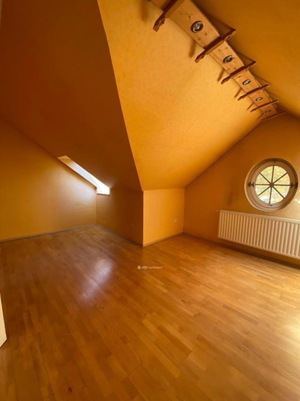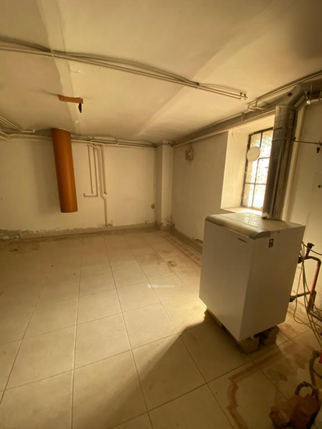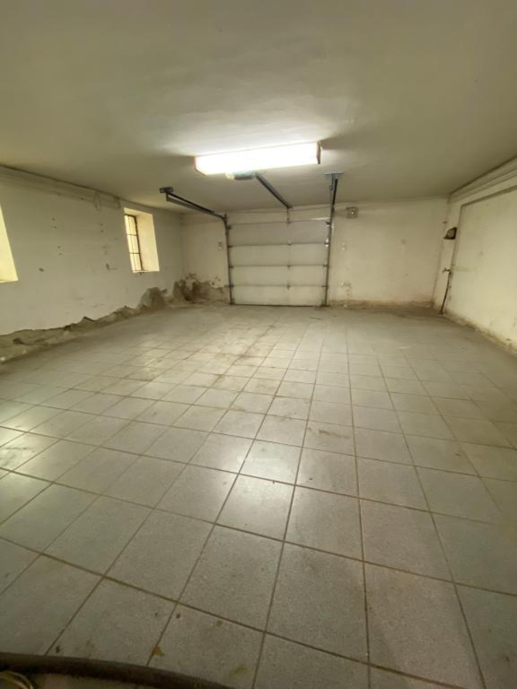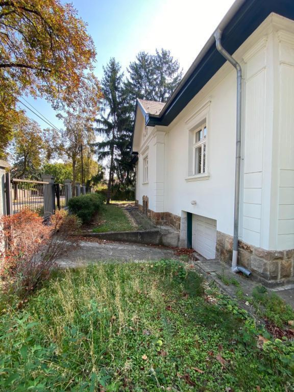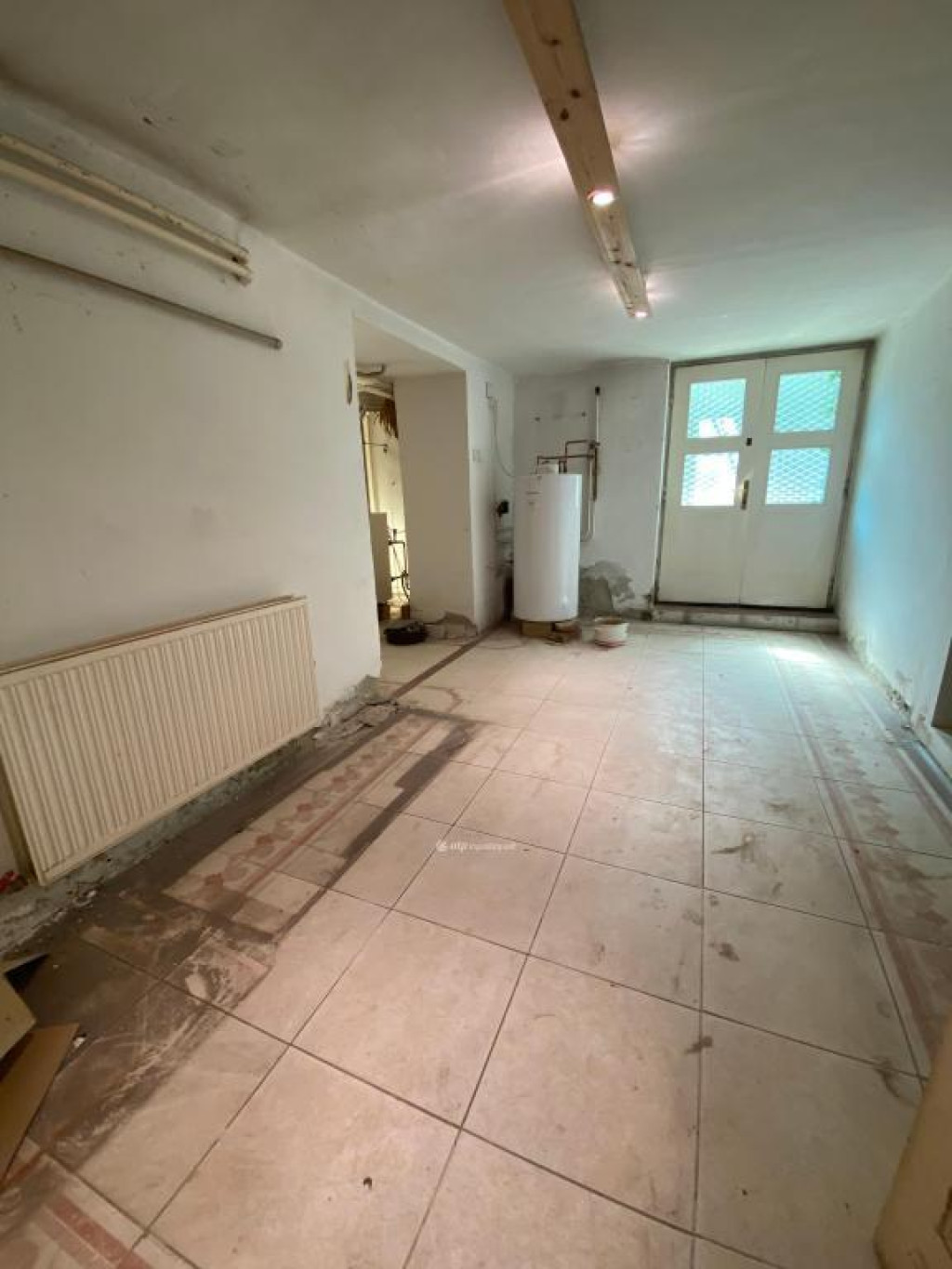 Az alagsori szinten garázs, szauna, mosókonyha, gépészeti helyiség és egy garzon lakás került kialakításra. Egy kocsi számára nyitott felszíni beálló is található. A ház felújítandó.