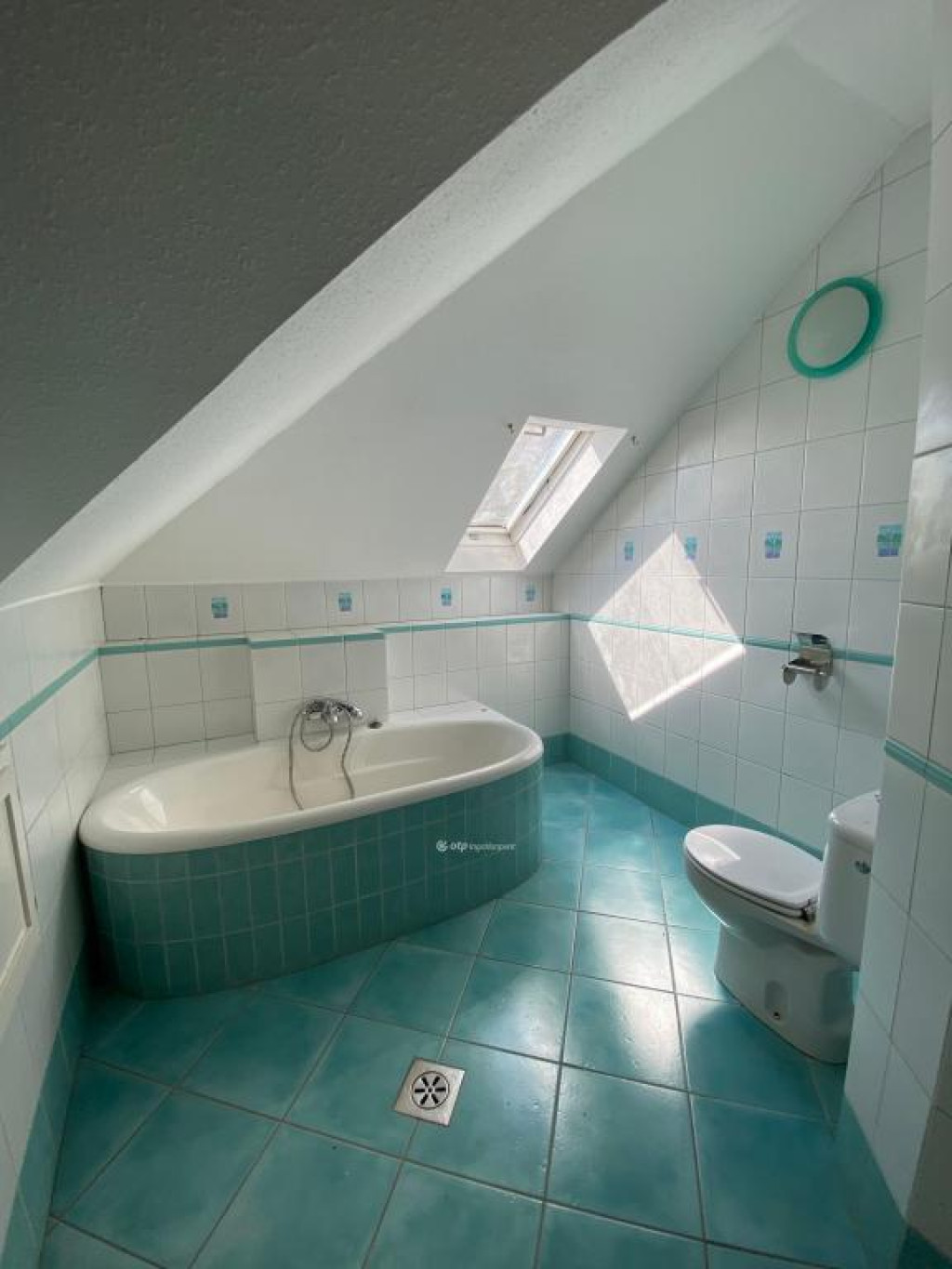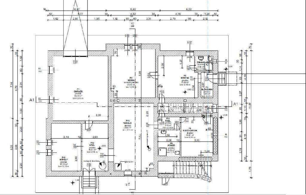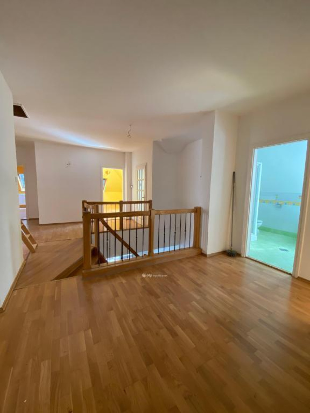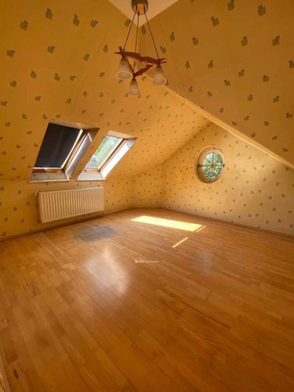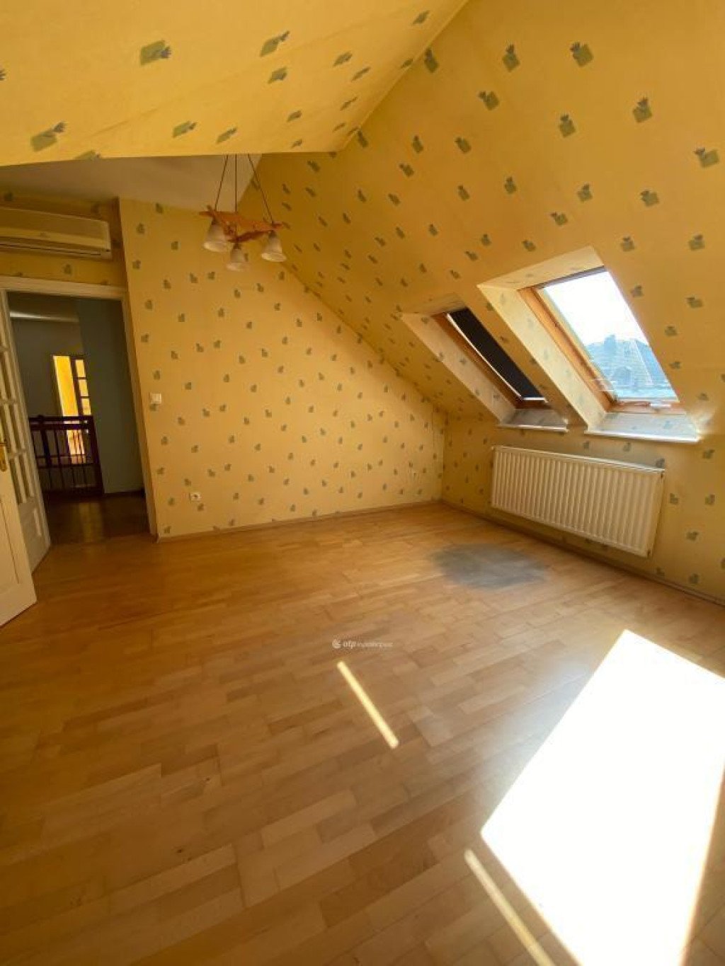 Az alagsori szinten garázs, szauna, mosókonyha, gépészeti helyiség és egy garzon lakás került kialakításra. Egy kocsi számára nyitott felszíni beálló is található. A ház felújítandó.