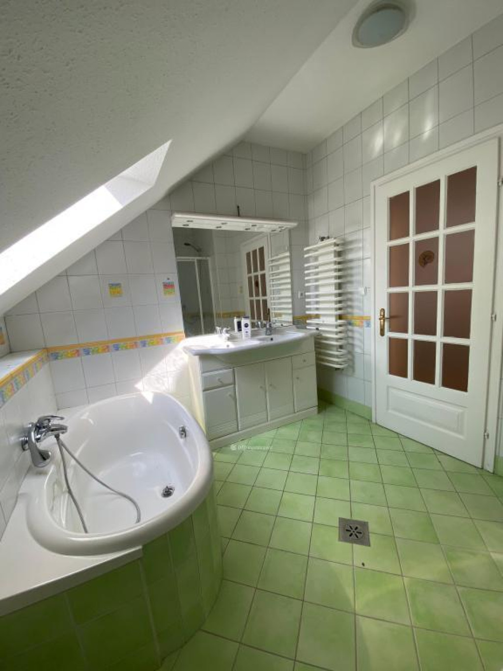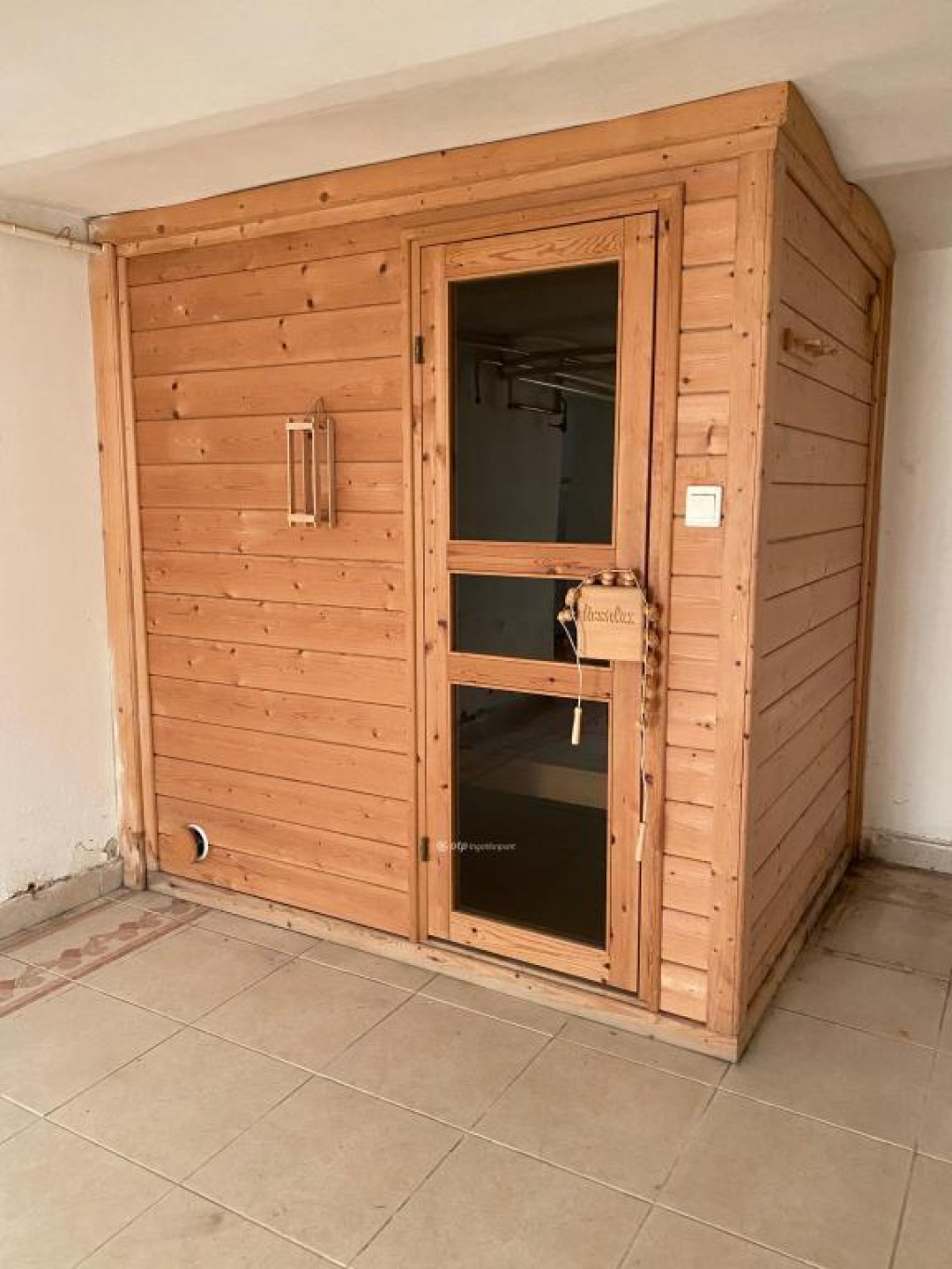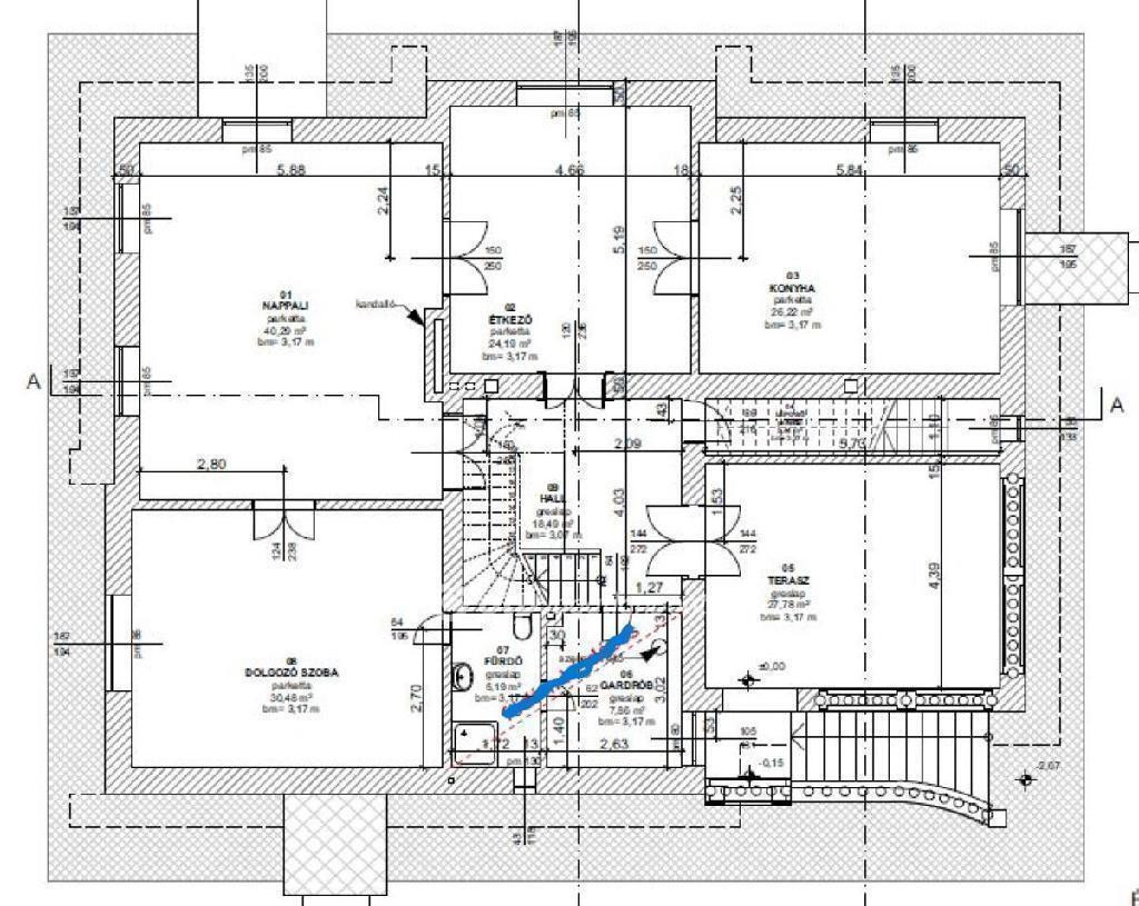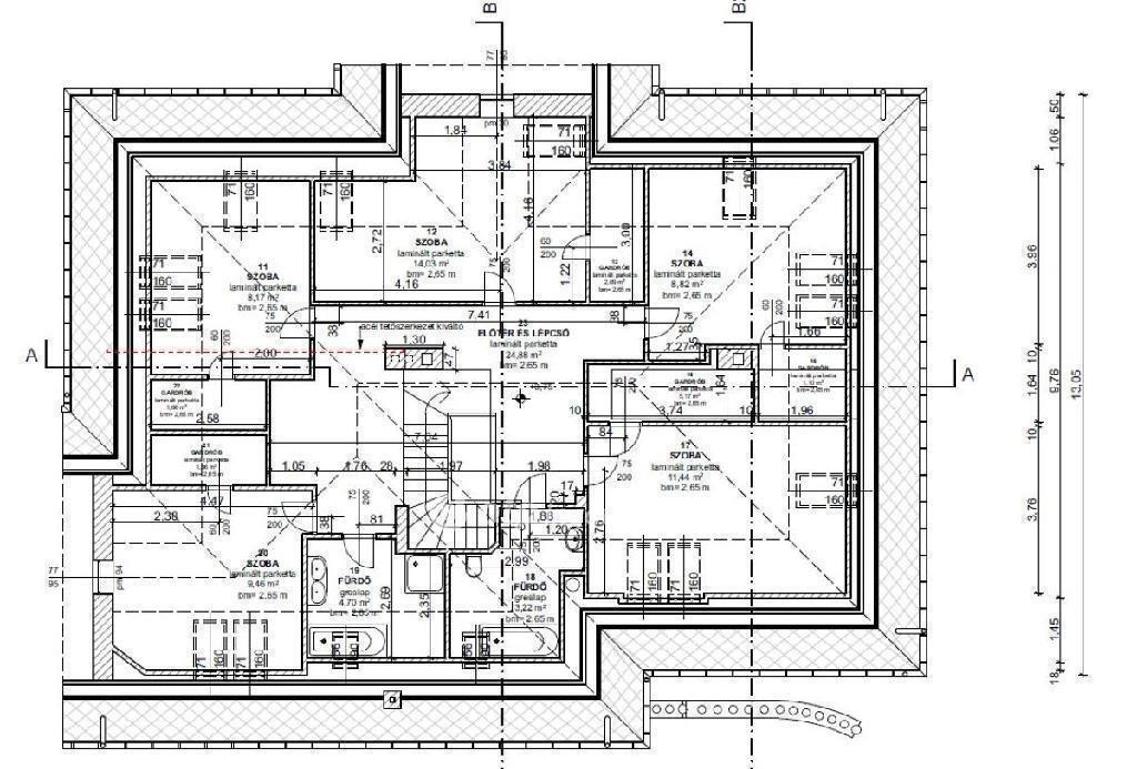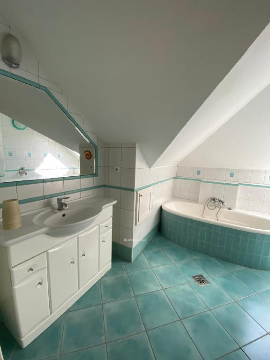 Az alagsori szinten garázs, szauna, mosókonyha, gépészeti helyiség és egy garzon lakás került kialakításra. Egy kocsi számára nyitott felszíni beálló is található. A ház felújítandó.