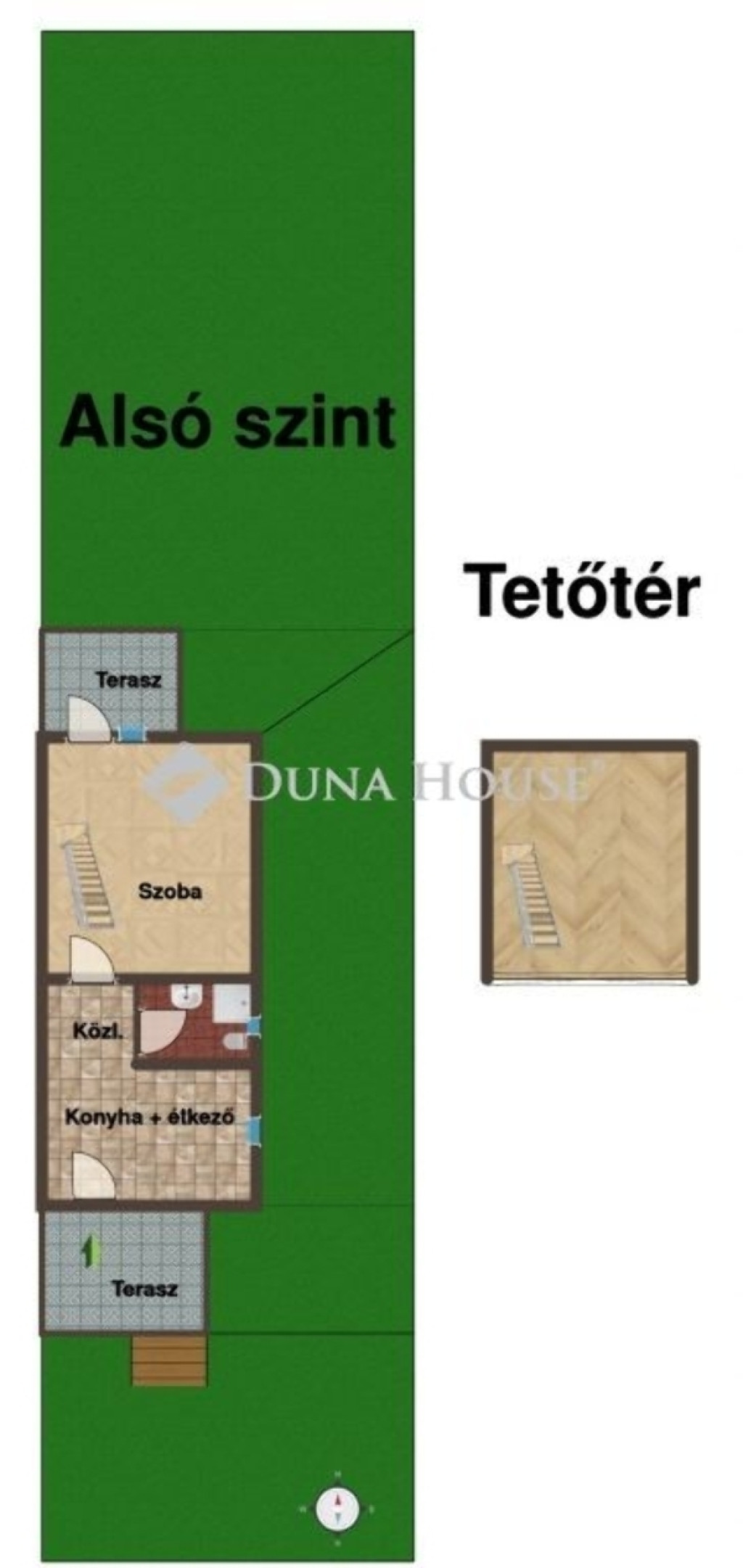 Eladó Csillaghegy kedvelt, frekventált, de mégis csendes részén, a Duna felőli oldalon egy osztatlan közös tulajdonban álló, két szintes, felújított házrész 222 m2-es saját, lekerített kert résszel. Az alsó szint 39 m2 alapterületű, egy tágas, világos szobával, világos konyhával egybekötött étkezővel és zuhanyzós fürdőszobával rendelkezik. A felső szinten egy 11 m2-es egybefüggő tér került kialakításra. A ház két bejárattal rendelkezik, melyeket külön beépíthető terasz övez. A nappaliból élvezhetjük a zöld kert látványát.Új, műanyag nyílászárók biztosítják a napfény zavartalan áramlását. A tető teljesen új. Az ingatlan hitelesített vízórával rendelkezik, csatornázott, 80 literes villanybojler biztosítja a meleg vizet. A fűtés hűtő-fűtő klimákkal, valamint svéd NOBO márkájú panellel biztosított. Lehetőség van vegyes tüzelésű fűtés kialakítására, tekintve, hogy a kémény és a gáz csonk ezt lehetővé teszi. A villanyóra új, háromfázisú, 20 Amperes, az utcafronton két mellékmérővel ellátott. H tarifa az ingatlanhoz igényelhető. Az ingatlanhoz Használati megosztásról szóló dokumentum készült. A szomszéd család kedves, barátságos. Esetleges tovább értékesítés esetén, nem élnek az elővásárlási jogukkal, ezt ügyvéd előtt is megerősítik. A közelben, 2 percre iskola, 5 percre bölcsőde, óvoda található. Az ügyeletes gyógyszertárakba, a szakrendelőbe autóval pár perc alatt eljuthat. A közelben helyezkedik el a Vásárcsarnok és a különböző bevásárlóközpontok ( Aldi, Lidl, Penny, Spar), benzinkutak. Jó közlekedéssel rendelkezik, tömegközlekedéssel is (Hév, buszok) a városközpont 30-45 perc alatt elérhető.