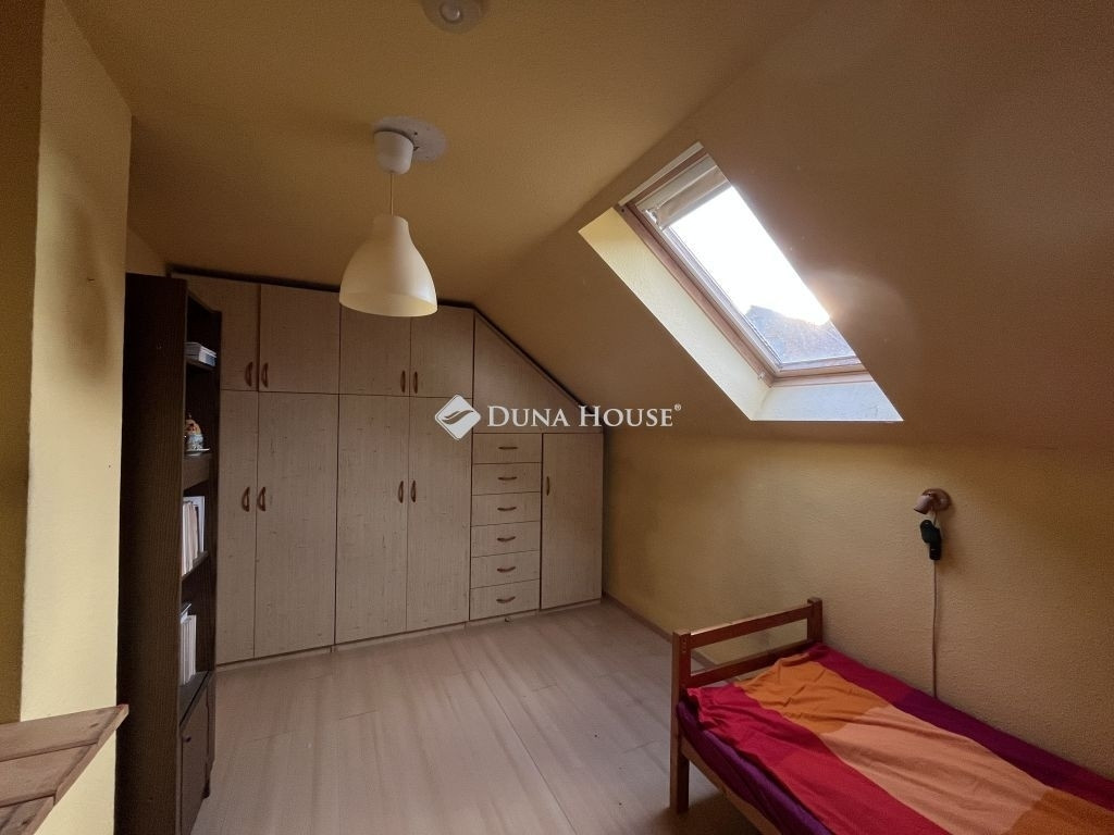 A ház 2000-ben épült, teljes közművel ellátott. A földszinten nappali, konyha, hálószoba, valamint egy kisebb, zuhanyzós fürdőszoba kapott helyet, WC-vel. A tetőtérben további két szoba és egy tágas, káddal felszerelt fürdőszoba található. Az emelethez erkély, a földszinthez pedig terasz kapcsolódik.