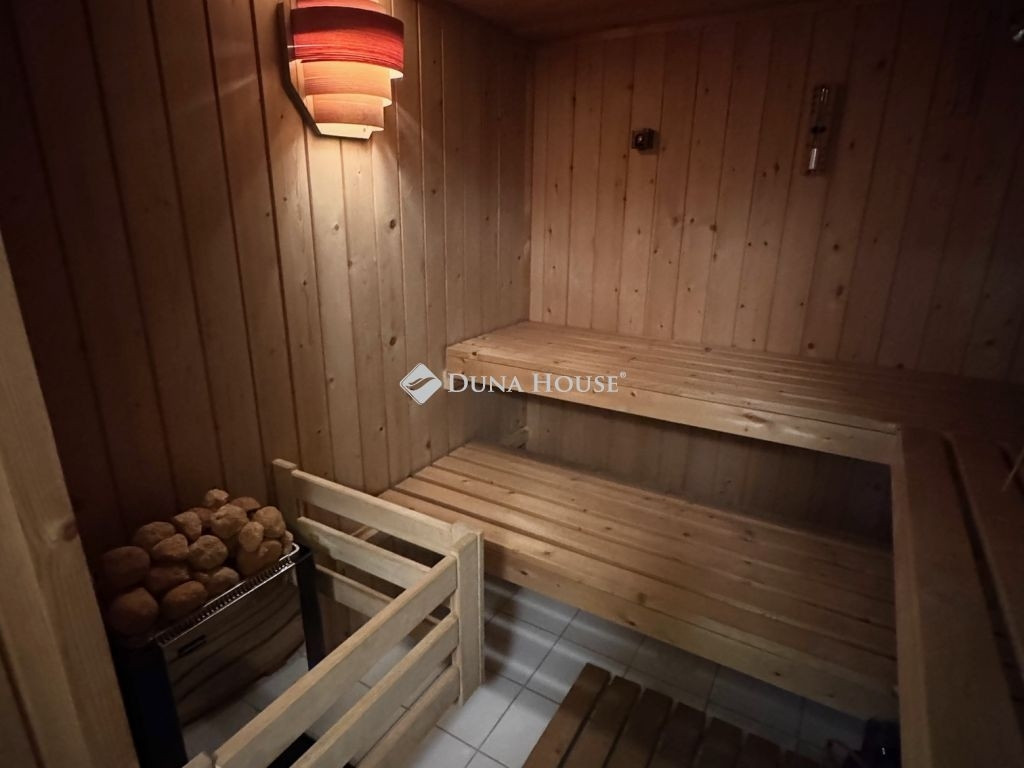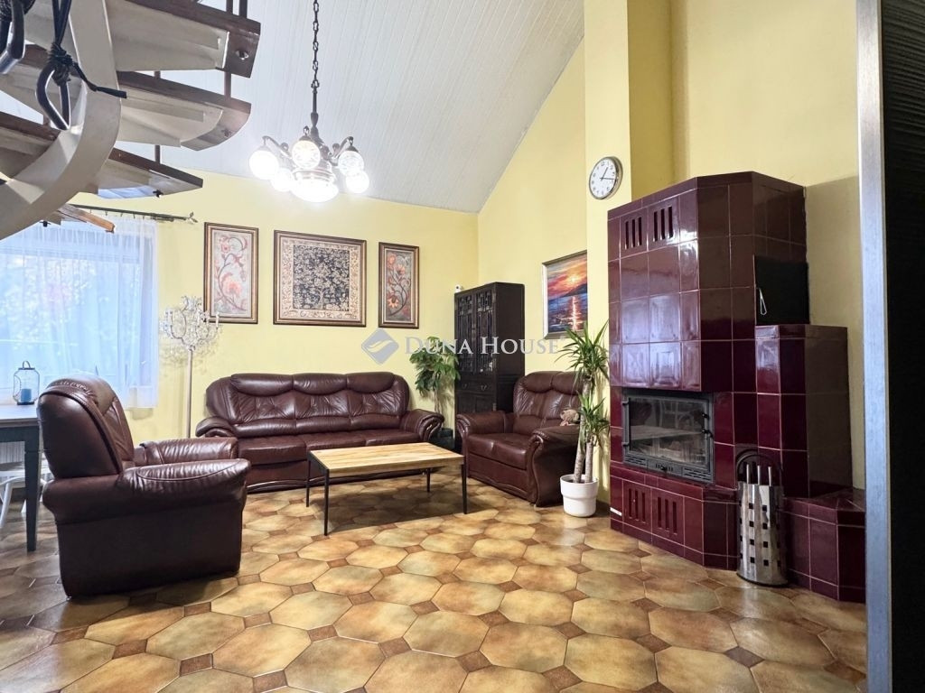A ház különlegessége a nagy belmagasságú nappali kandallóval, és galériával, a panorámás felső szinti hálószobák, valamint az alagsori szauna a mindennapi kényelem tökéletes kombinációja.