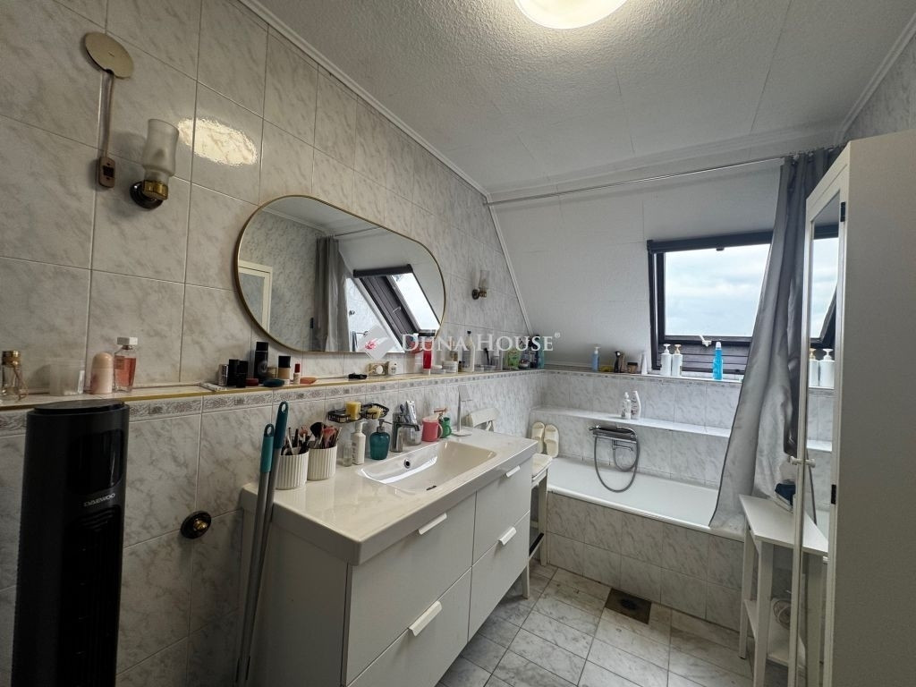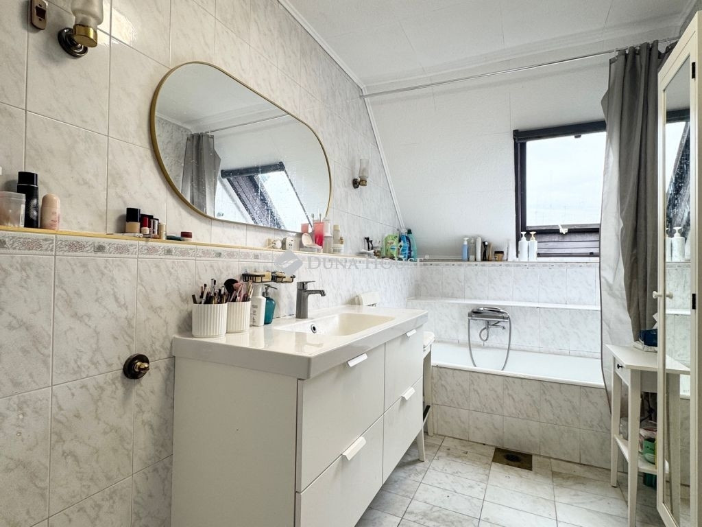 Az emeletre három tágas hálószoba és egy modern fürdőszoba került, ahonnan gyönyörű panoráma nyílik Budapestre.