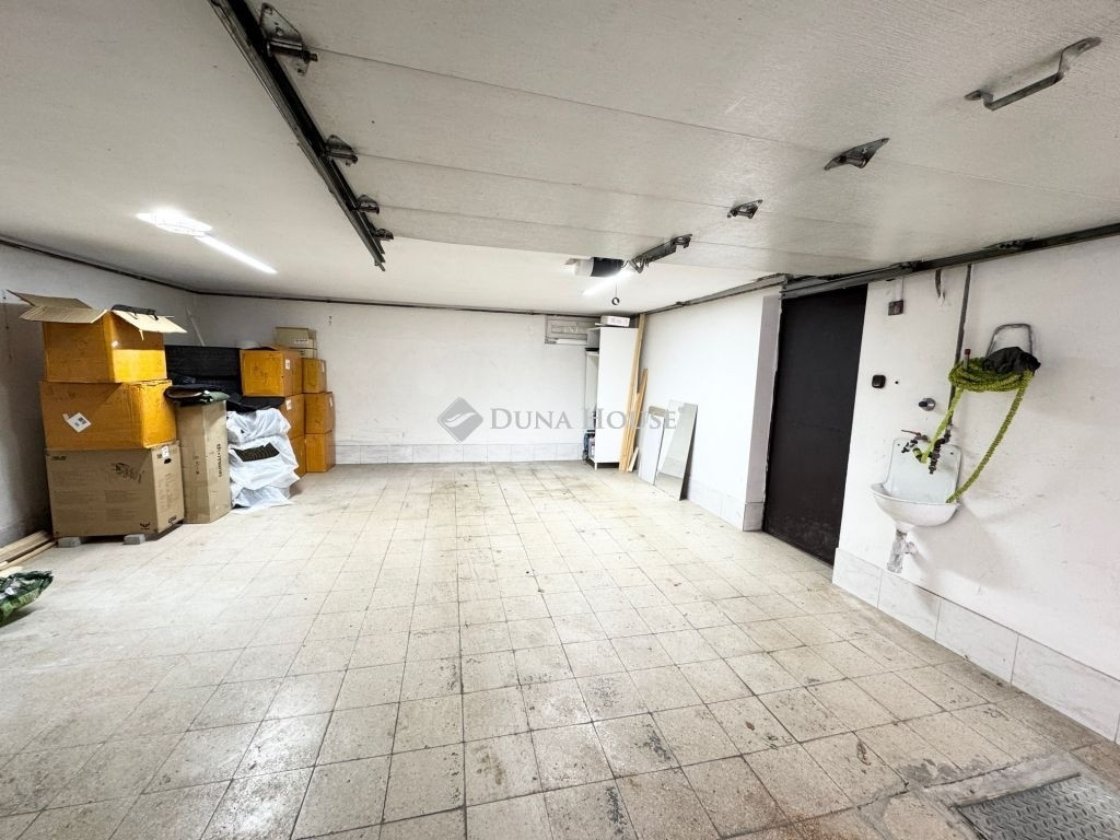 A félszuterén szinten 32 m²-es garázs, külön kazánház, egy nappali vagy játszószoba, a háztartási helyiség, valamint a szauna, a hozzátartozó zuhanyzóval található.