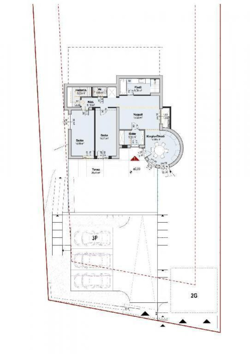 Mind a konyha és a hálószobák közvetlen 25,45 m2-es teraszkapcsolattal rendelkeznek, ahonnan a zöld saját kert is megközelíthető.