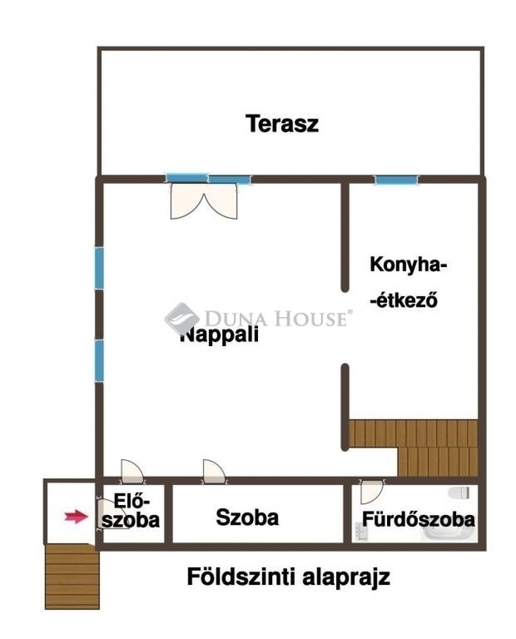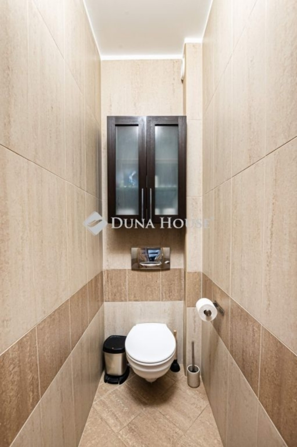 - Ezen a szinten található a tágas nappali, az abból nyíló étkező-konyha, amely egy rejtett tolóajtóval elválasztható, itt található továbbá egy zuhanyzós fürdő és egy hálószoba is.