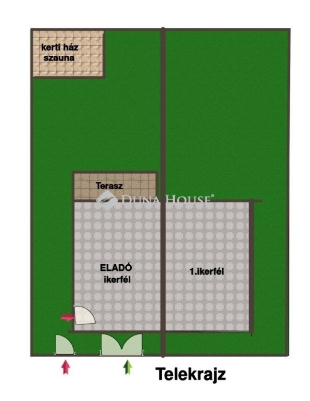 További extrák: riasztó, öntözőrendszer (javítást igényel), elektromos alumínium redőnyök a földszinten, (emeleten manuális redőnyök).