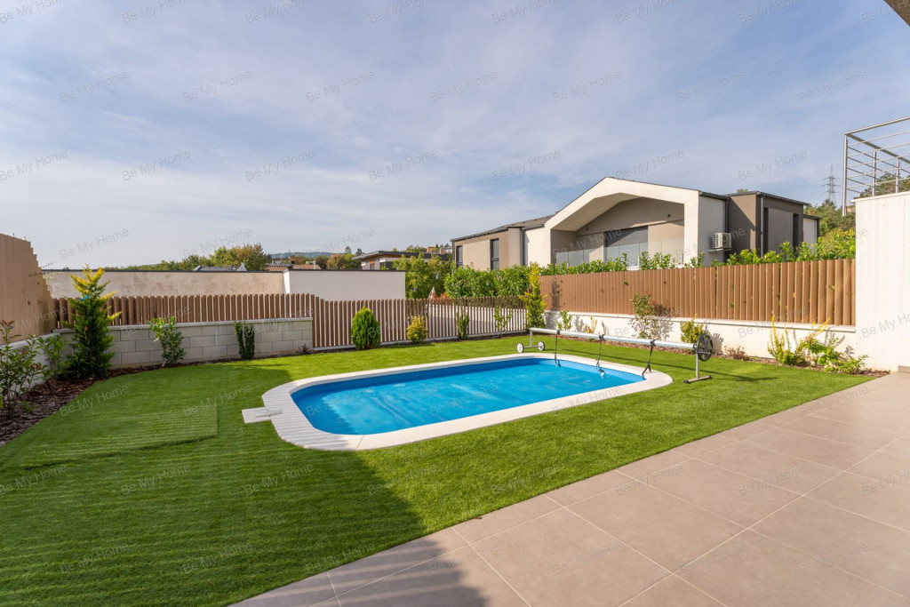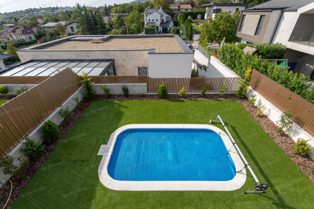Kertben helyet kapott egy 4,5 x 2,5méteres medence, gépházzal.