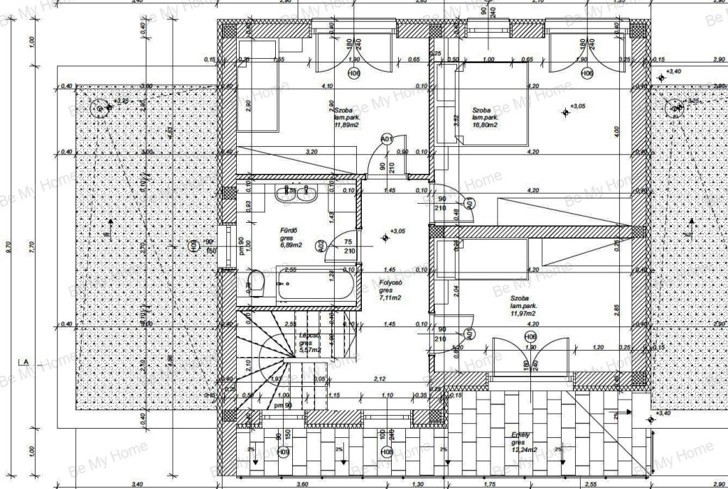 2 gyerekszoba (11,89m2 és 11,97m2)