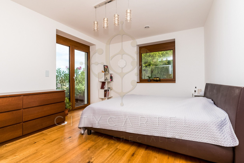 - Internorm alu-műanyag nyílászárók beépített nyitásérzékelőkkel és Internorm alumínium bejárati ajtó oldalbevilágító ablakkal, 4 rétegű üvegezéssel.