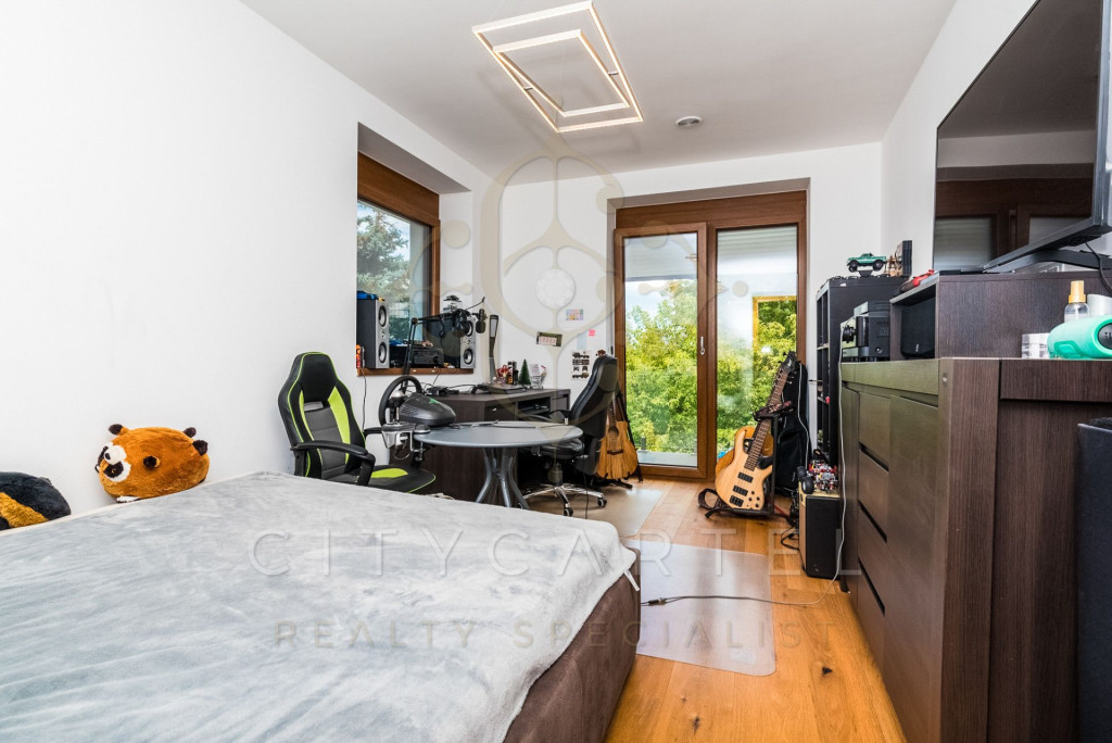 - Hikvision videós kaputelefon és biztonsági kamerarendszer (épület falazatán 9 kamera, kertben 8 kamera, melyekből kettő zoom-os, mozgatható és programozható; fali LCD kezelőpanel minden szinten).