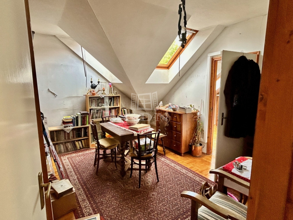 The upper floor was added in the early 2000s, when the original attic was reinforced with concrete beam flooring and converted into a fully functional apartment with a raised roof. The upper unit is accessible via a private external staircase.