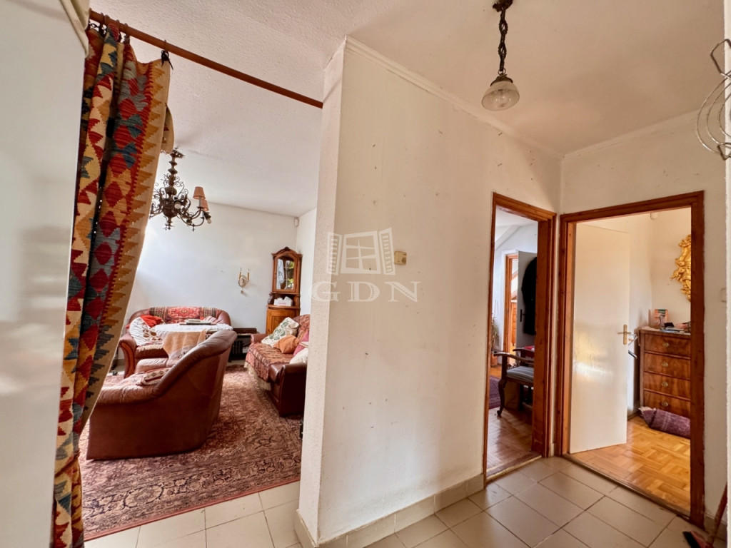 Az 500 m²-es telekrészen egy ikerház egyik fele található, amely jelenleg két különálló, teljes értékű lakást foglal magában – a földszinten lévő lakás 84 m2, a tetőtéri lakás nettó 75 m2, egymás felett elhelyezkedve, saját bejárattal. Az alsó és felső lakás különállóságának köszönhetően ideális többgenerációs családoknak, összeköltözőknek vagy akár befektetőknek is.