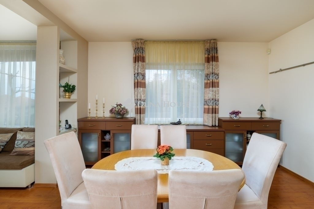Hatalmas nappali nagy ablakokkal és lenyűgöző panorámával. Minőségi burkolatok és szaniterek. Letisztult, időtálló stílus modern részletekkel. Külső környezet és elhelyezkedés: A telken belül több autó számára beállás biztosított. A ház az utca végén található, nincs átmenő forgalom, ezáltal rendkívül csendes és biztonságos. Az utca végén induló erdő közelsége ideális sétákhoz, kutyás gazdiknak, sportolóknak. A környék családbarát, jó közlekedéssel, bevásárlási lehetőségekkel a közelben.