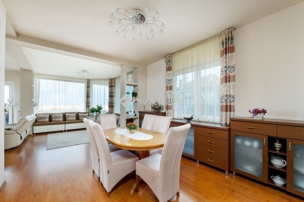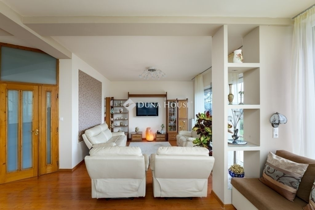 Hatalmas nappali nagy ablakokkal és lenyűgöző panorámával. Minőségi burkolatok és szaniterek. Letisztult, időtálló stílus modern részletekkel. Külső környezet és elhelyezkedés: A telken belül több autó számára beállás biztosított. A ház az utca végén található, nincs átmenő forgalom, ezáltal rendkívül csendes és biztonságos. Az utca végén induló erdő közelsége ideális sétákhoz, kutyás gazdiknak, sportolóknak. A környék családbarát, jó közlekedéssel, bevásárlási lehetőségekkel a közelben.