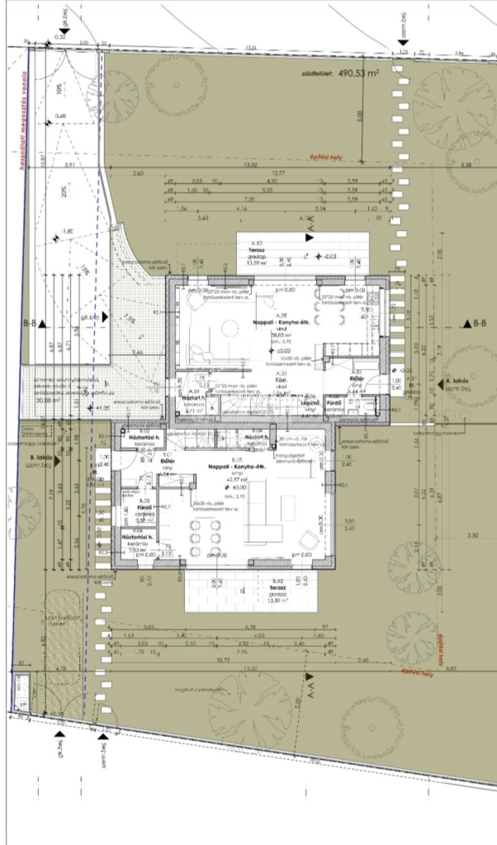 Az ikerház másik fele hasonló elrendezésű, kisebb telekrésszel, ugyanakkor egy plusz pinceszinttel bővített, ahol egy kényelmes kétállásos mélygarázs, gépészeti helyiség és egy 8,5 m²-es tároló kap helyet. A 143 m² hasznos alapterületű ingatlan irányára 255,9 millió Ft.