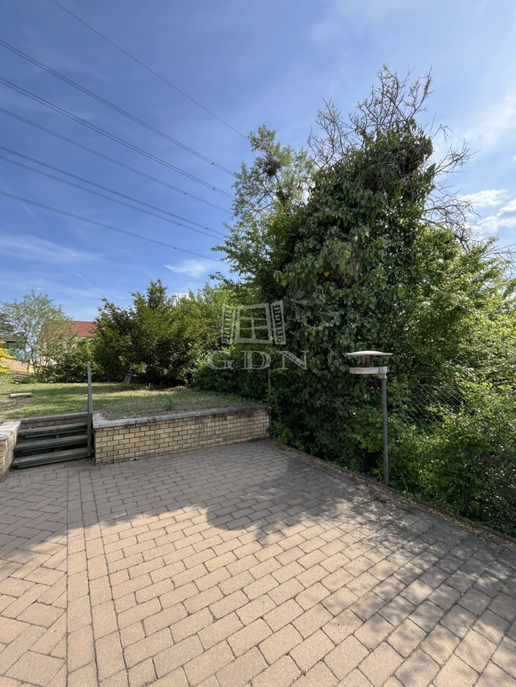 A 372 m²-es, gondozott telek lépcsőzetes kialakítású, magaságyásokkal és termő barackfával. A locsolást fúrt kút biztosítja, ami gazdaságos fenntartást tesz lehetővé. A garázs előtti térkövezett beállón további két autó is kényelmesen parkolhat a telken belül. A telek osztatlan közös területen található, az ár ennek megfelelően került meghatározásra, a telekhatárok évtizedek óta ügyvédi rögzítéssel rendezettek.