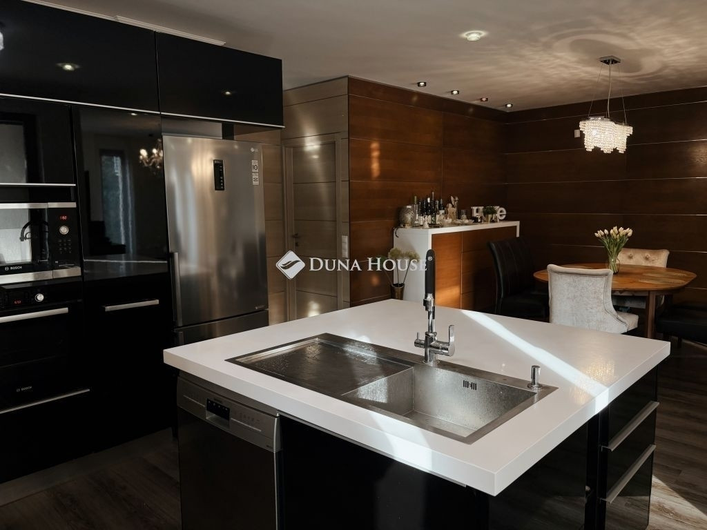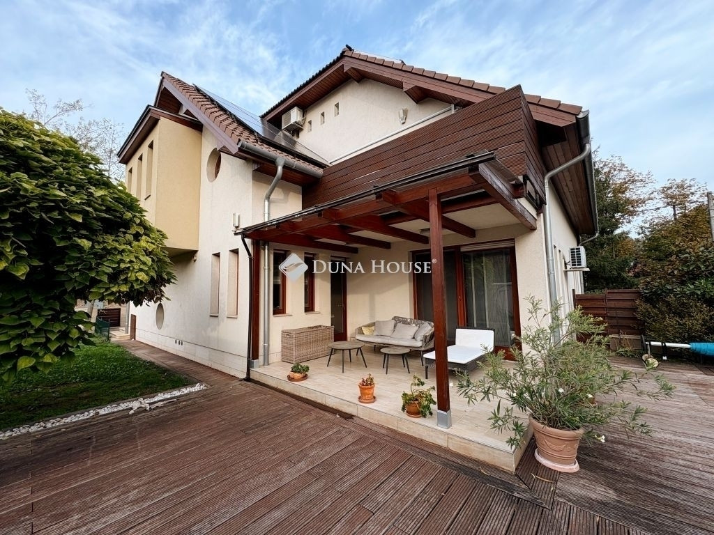 Újpest csendes, kertvárosi részén eladó kiváló műszaki állapotú, folyamatosan karbantartott, belső kétszintes, 239m2-es, 5 szobás, 3 fürdőszobás, hőszivattyús - napelemes fűtésű ikerházfél 2 állásos garázzsal, 440 m2-es, parkosított, öntőzőrendszerrel, épített mefencével felszerelt telekkel.