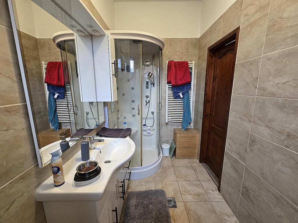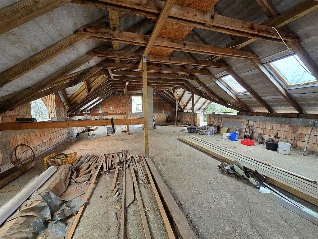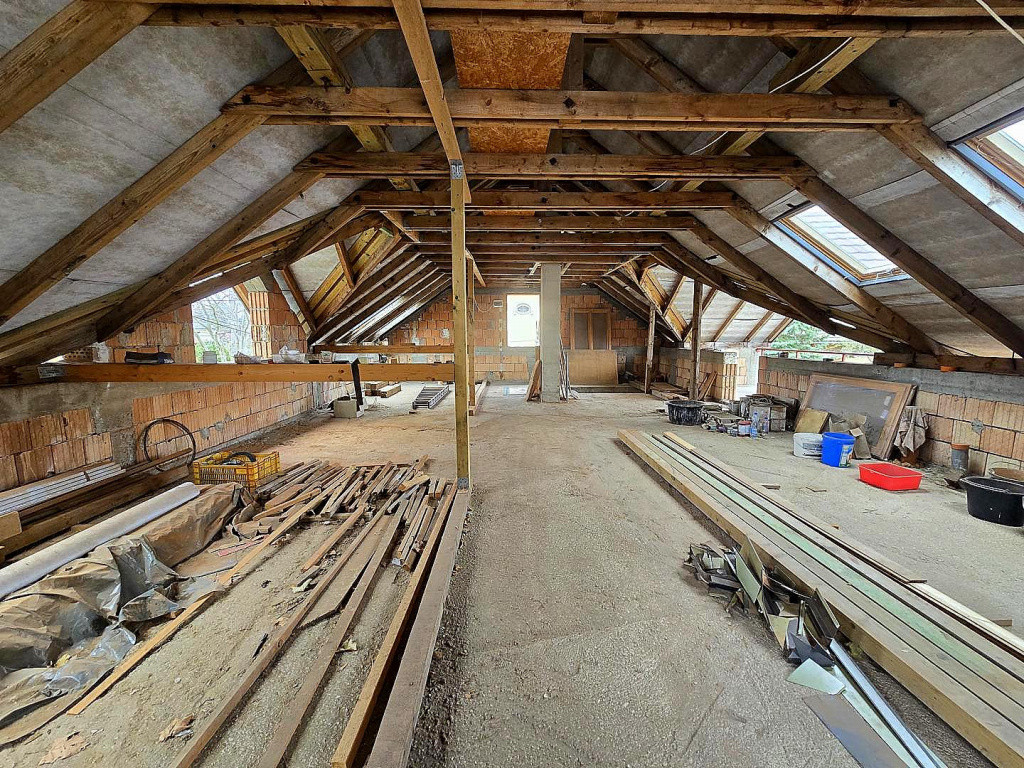 - 10 éve épült felső szint, térfal, gerendázat, Tondach agyagcserép,