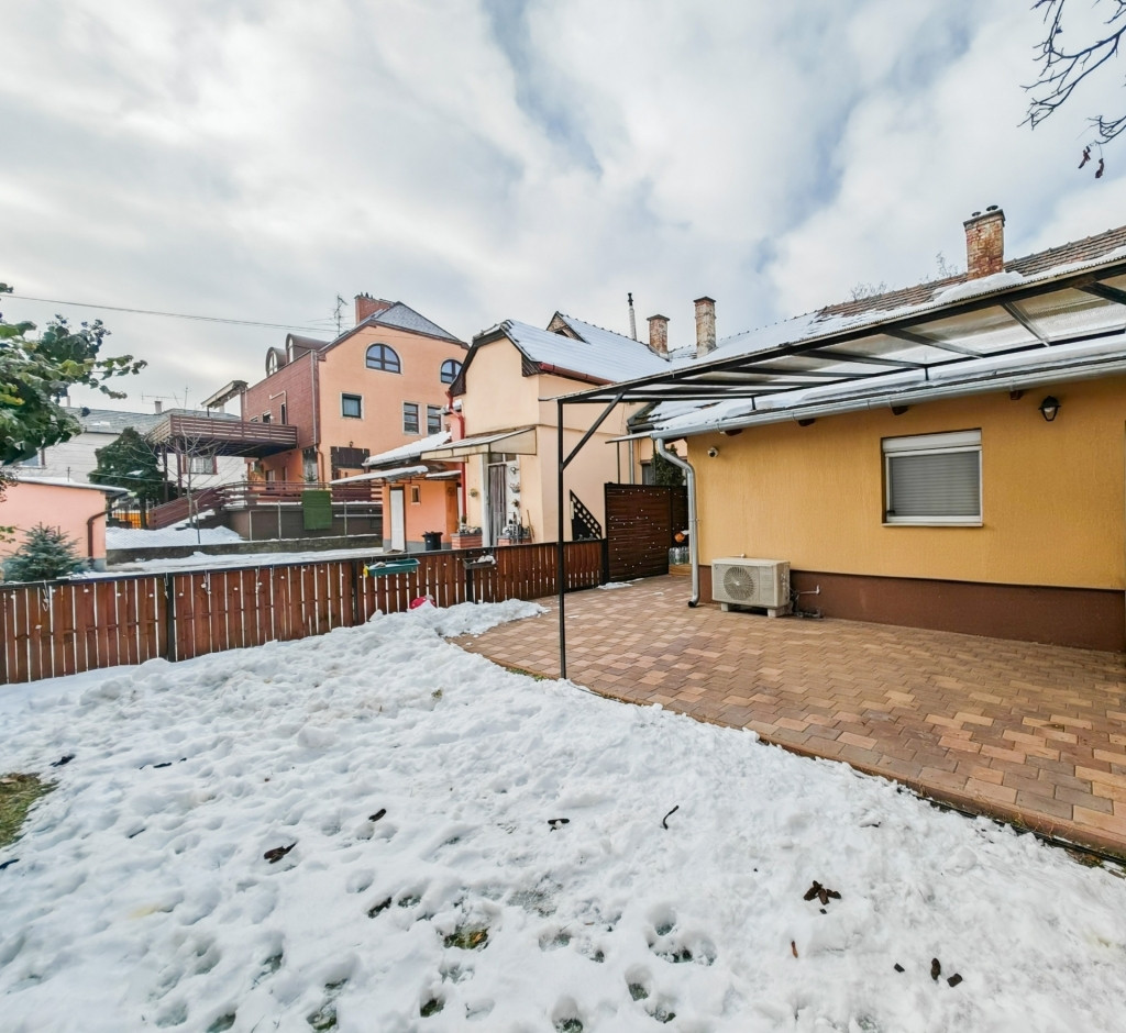 - kb. 50 m2-es lekerített, részben fedett teraszon és kertben élvezheti a nyári sütögetést, vagy a gyerekek a medencézést