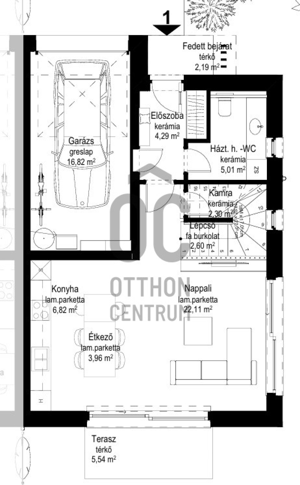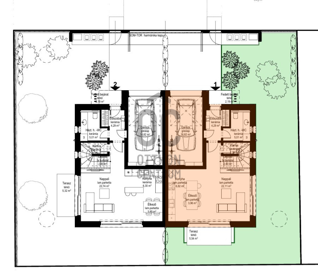 - Tágas, 33 m²-es amerikai konyhás nappali, közvetlen teraszkapcsolattal és kerttel