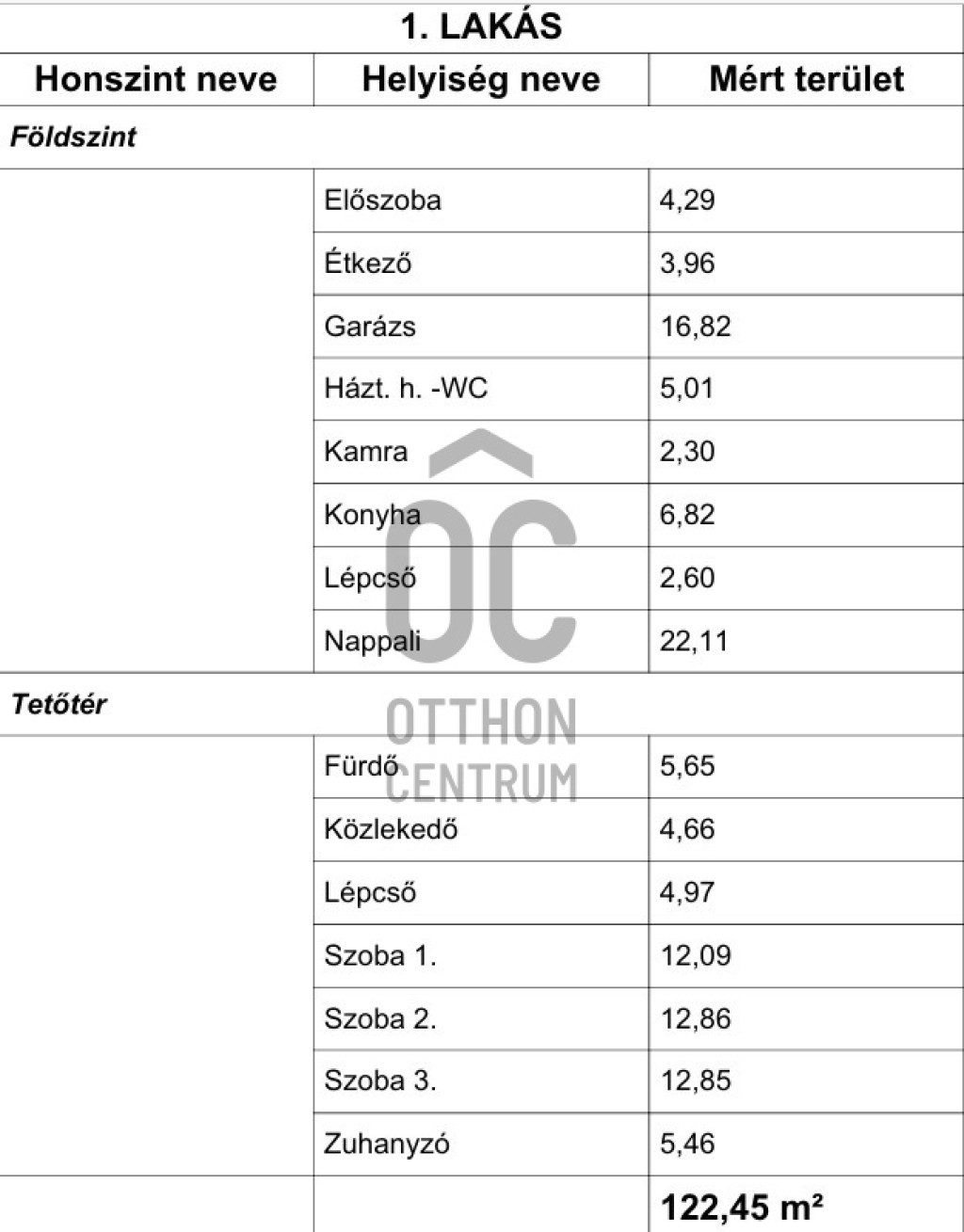 A hasznos alapterület 122 m², két szinten: