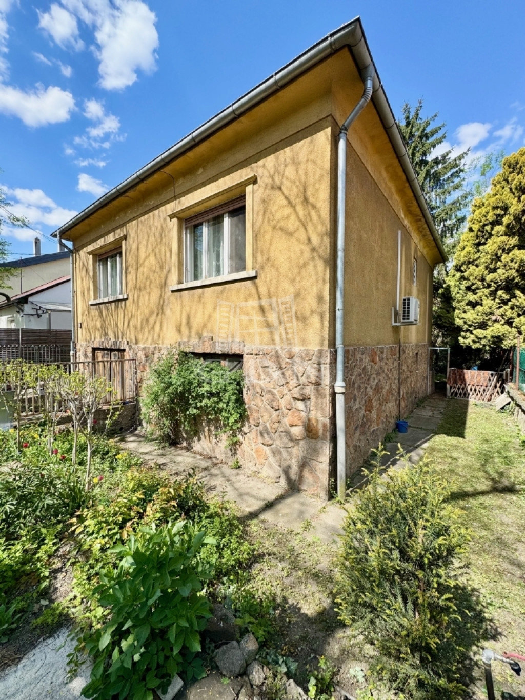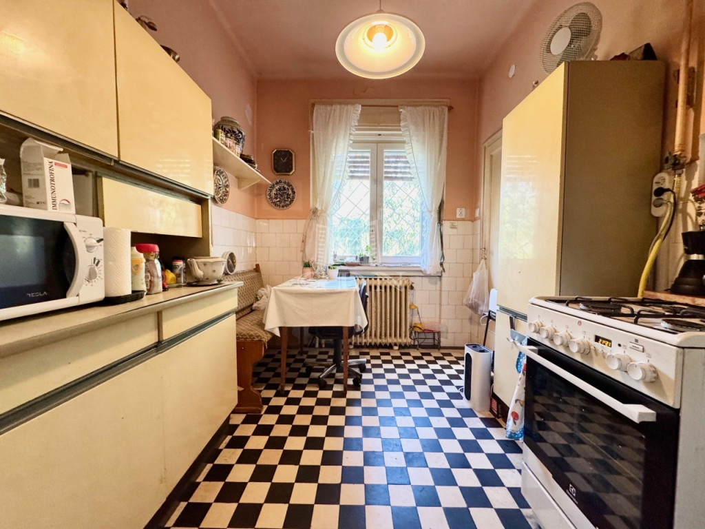 X. kerület kedvelt családiházas övezetében, kiváló közlekedés és ellátottság mellett, 700 nm-es összközműves telken, egyedi adottságokkal rendelkező, 1965-ben épült, 2 szintes, körbejárható, bruttó 200, nettó 150 nm-es lakóterületű, 2 szintes, (garázs/műhely/szuterén 100 nm, lakószint 100 nm), 4 szobás, étkező konyhás, kiváló elosztású, napos világos DK-ÉNY-i fekvésű, gázcirkó és vegyestüzelésű kazán fűtésű, tágas, élhető terekkel rendelkező, szerkezetileg és statikailag is egyaránt jó, belterét tekintve közepes állapotú, klimatizált családi ház, közvetlenül a házból megközelíthető garázzsal, műhellyel, madárcsicsergős, csendes, gondozott, ősfás kerttel, kulturált környezetben eladó.