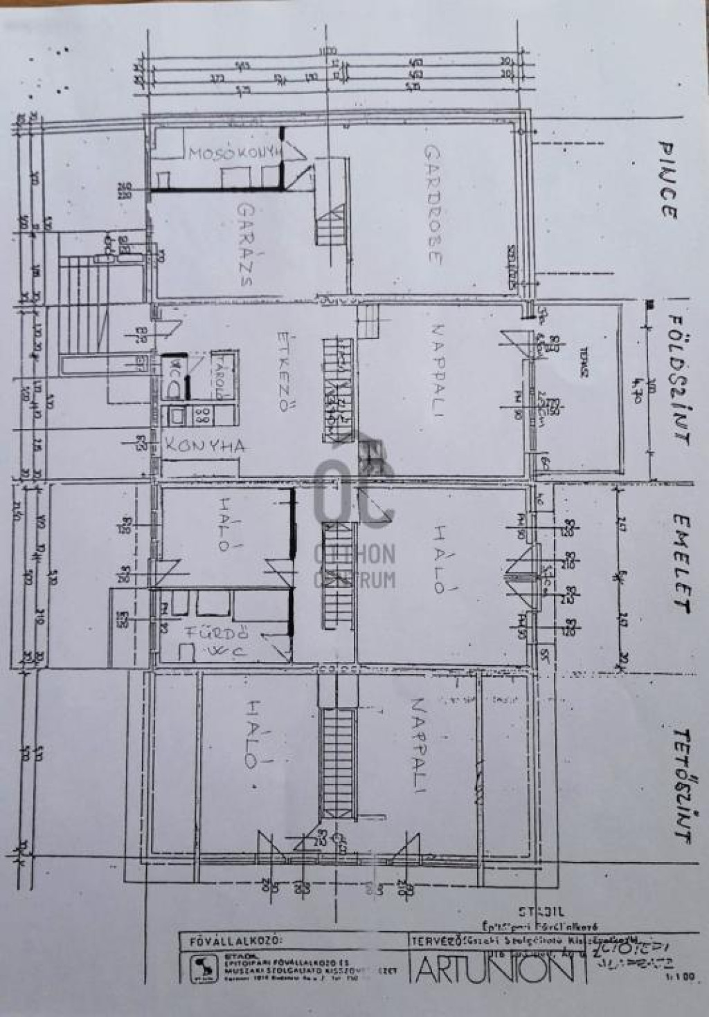 A pinceszinten (44 nm) nagy gardrób (mely vasalószobaként is funkcionál) megkönnyíti a családi mindennapokat. Itt található a garázs is.